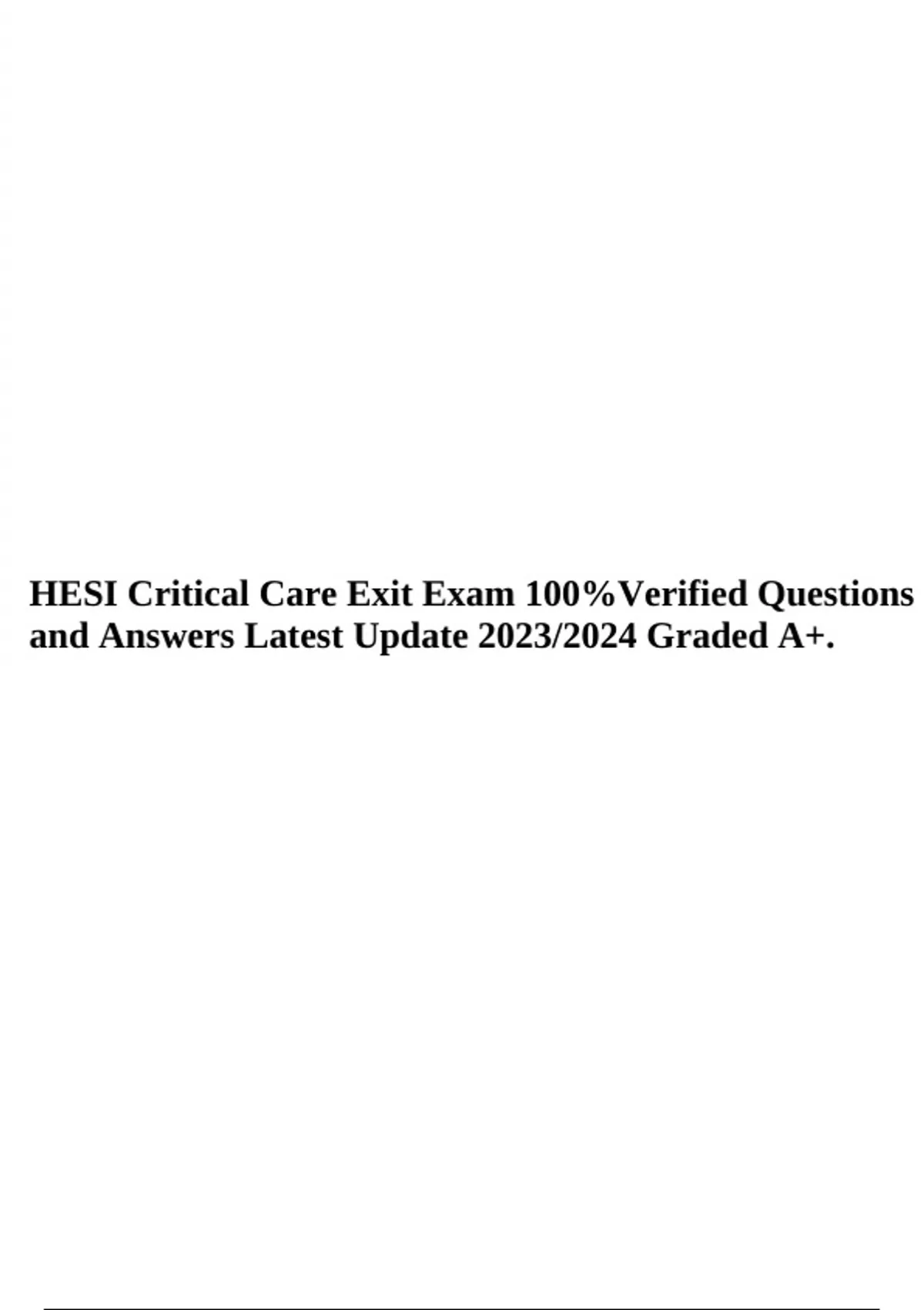 HESI Critical Care Exit Exam 100%Verified Questions and Answers Latest Update 2023/2024 Graded A+.
