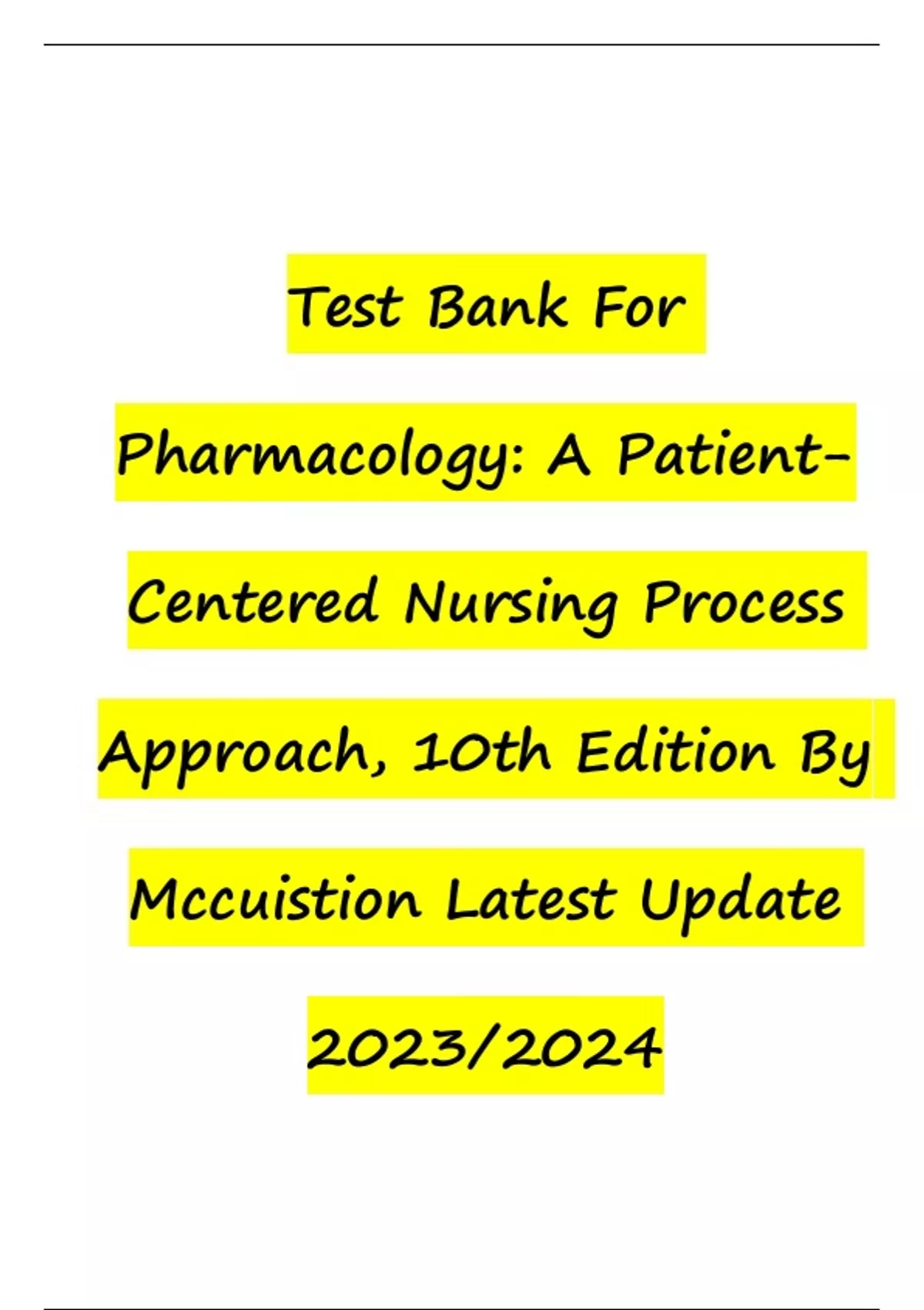 Test Bank For Pharmacology: A Patient-Centered Nursing Process Approach, 10th Edition By Mccuistion Latest Update 2023/2024