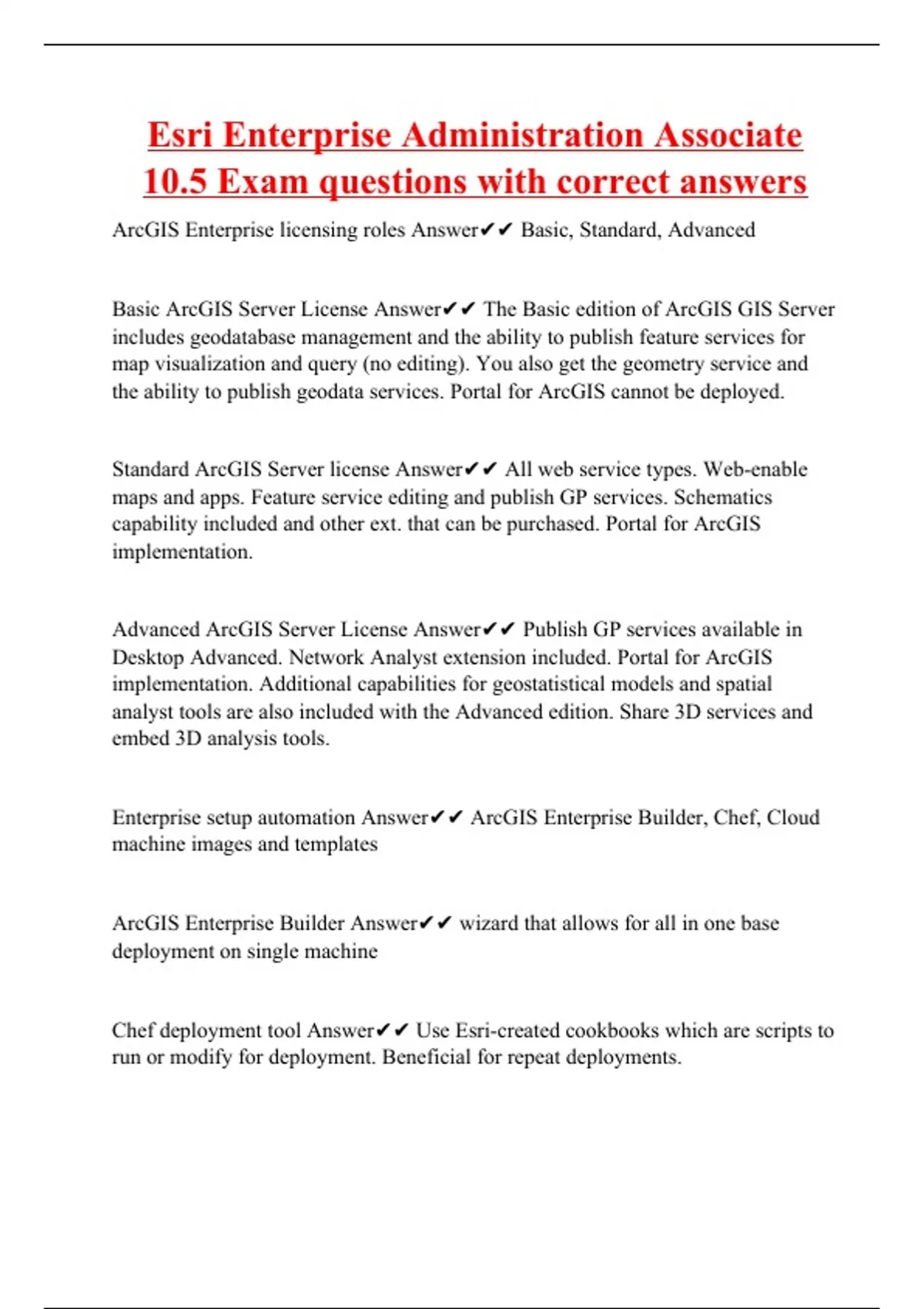 Esri Enterprise Administration Associate 10.5 Exam questions with correct answers
