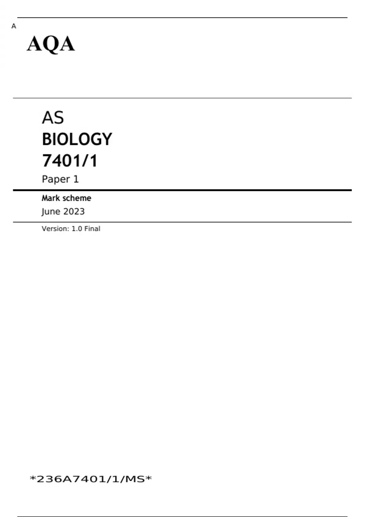 AQA AS BIOLOGY PAPER 1 JUNE 2023 MARK SCHEME