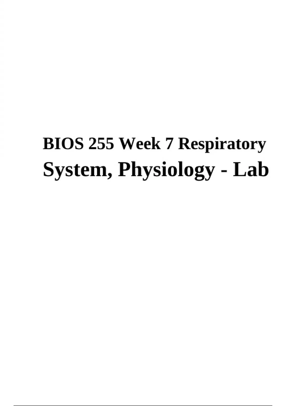 BIOS 255 Week 7 Respiratory System Physiology Lab Report (2023/2024)
