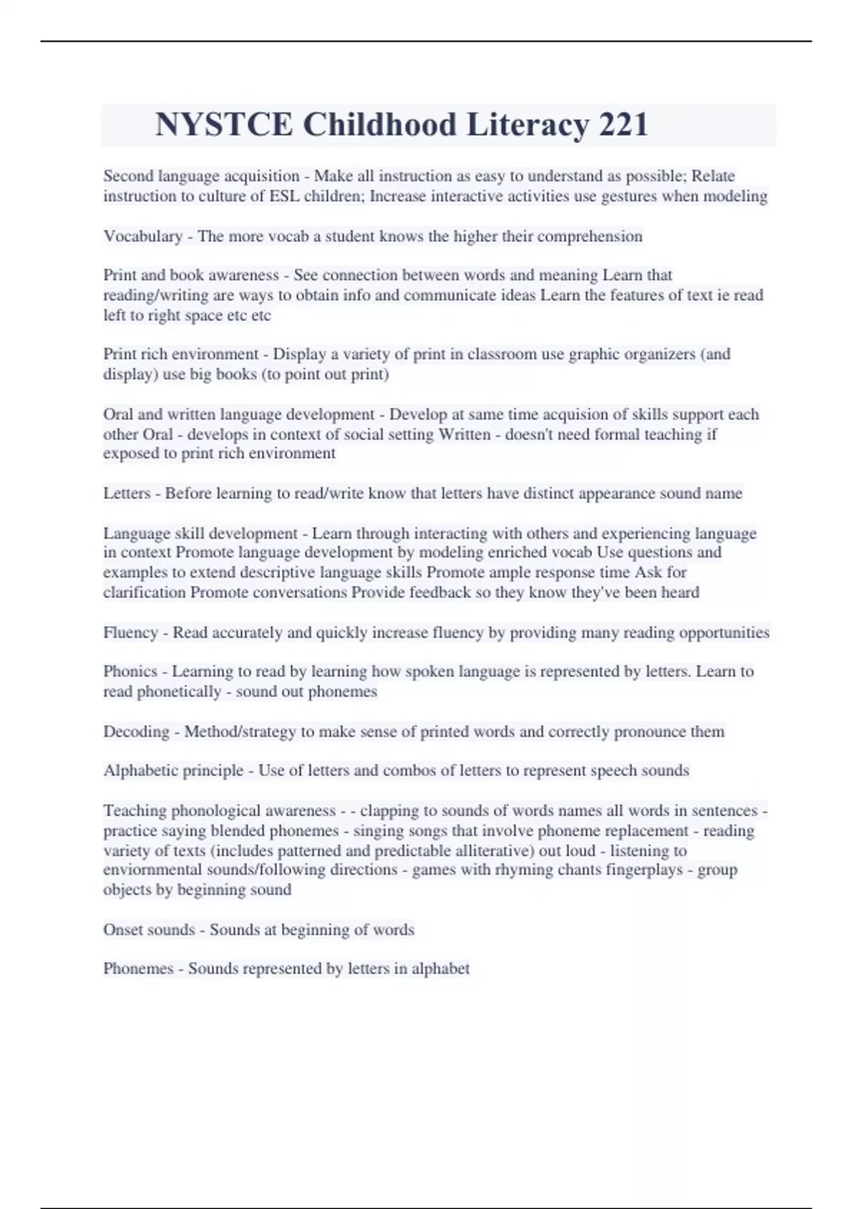 - NYSTCE Childhood Literacy 221