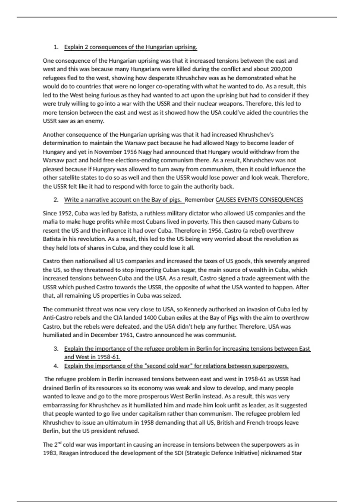 2. Write a narrative account on the Bay of pigs. Remember CAUSES EVENTS CONSEQUENCES