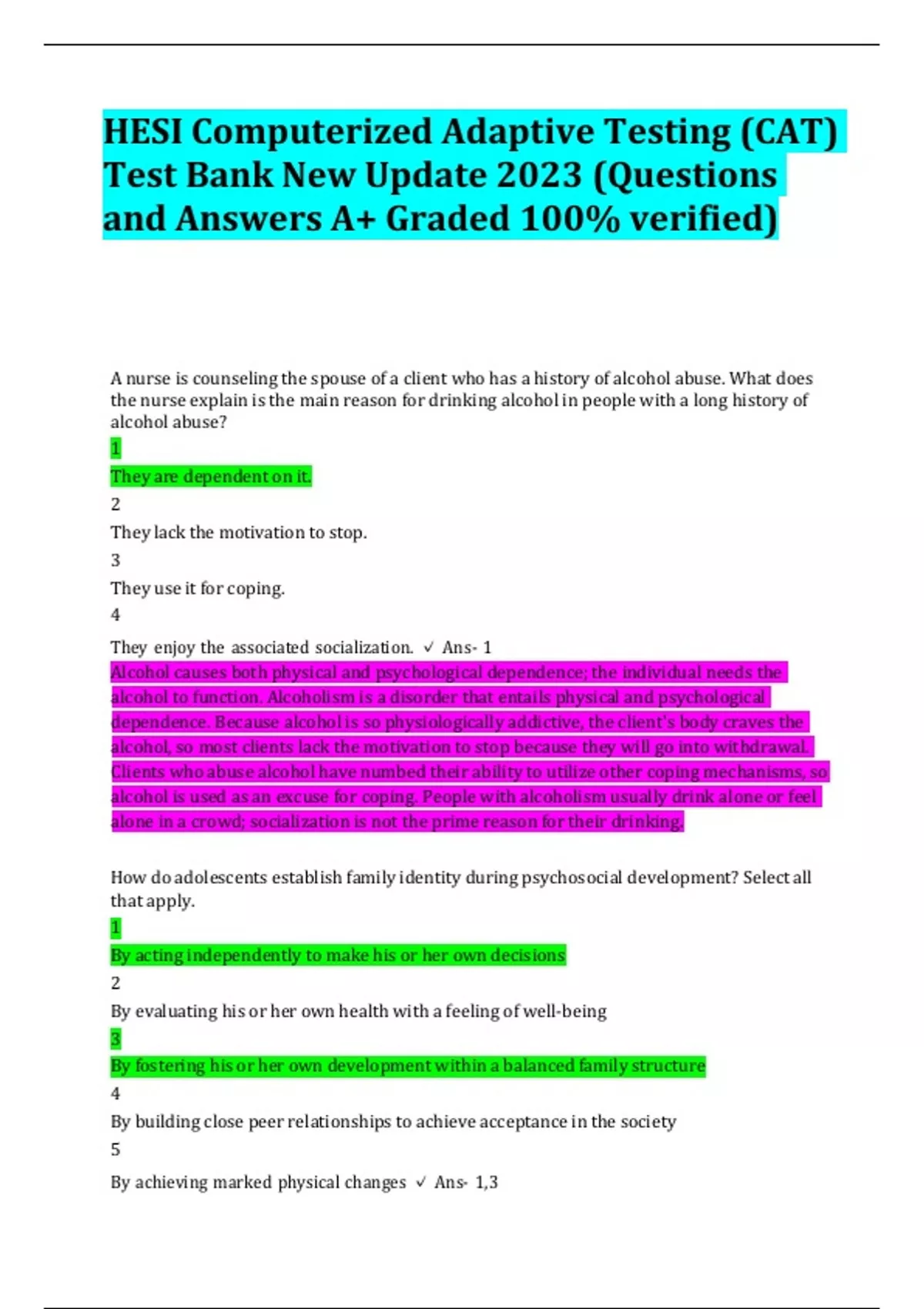HESI Computerized Adaptive Testing (CAT) Test Bank New Update 2023 (Questions and Answers A+ Graded 100% verified)