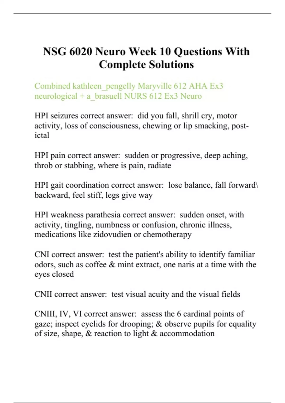 NSG 6020 Neuro Week 10 Questions With Complete Solutions.