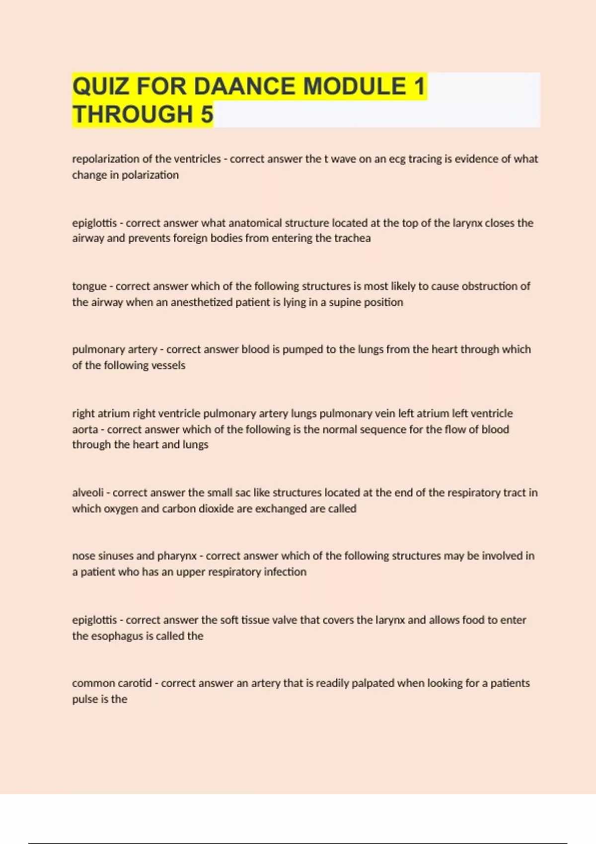 QUIZ FOR DAANCE MODULE 1 THROUGH 5|2023/24 UPDATE|GRADED A+