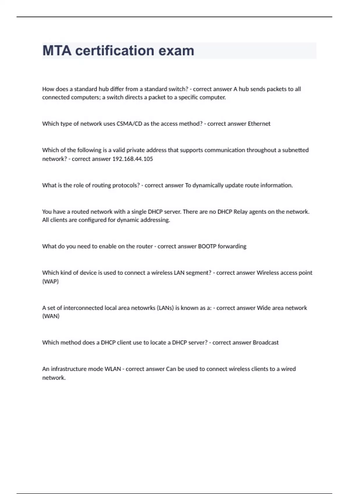 MTA certification exam correctly answered 2023