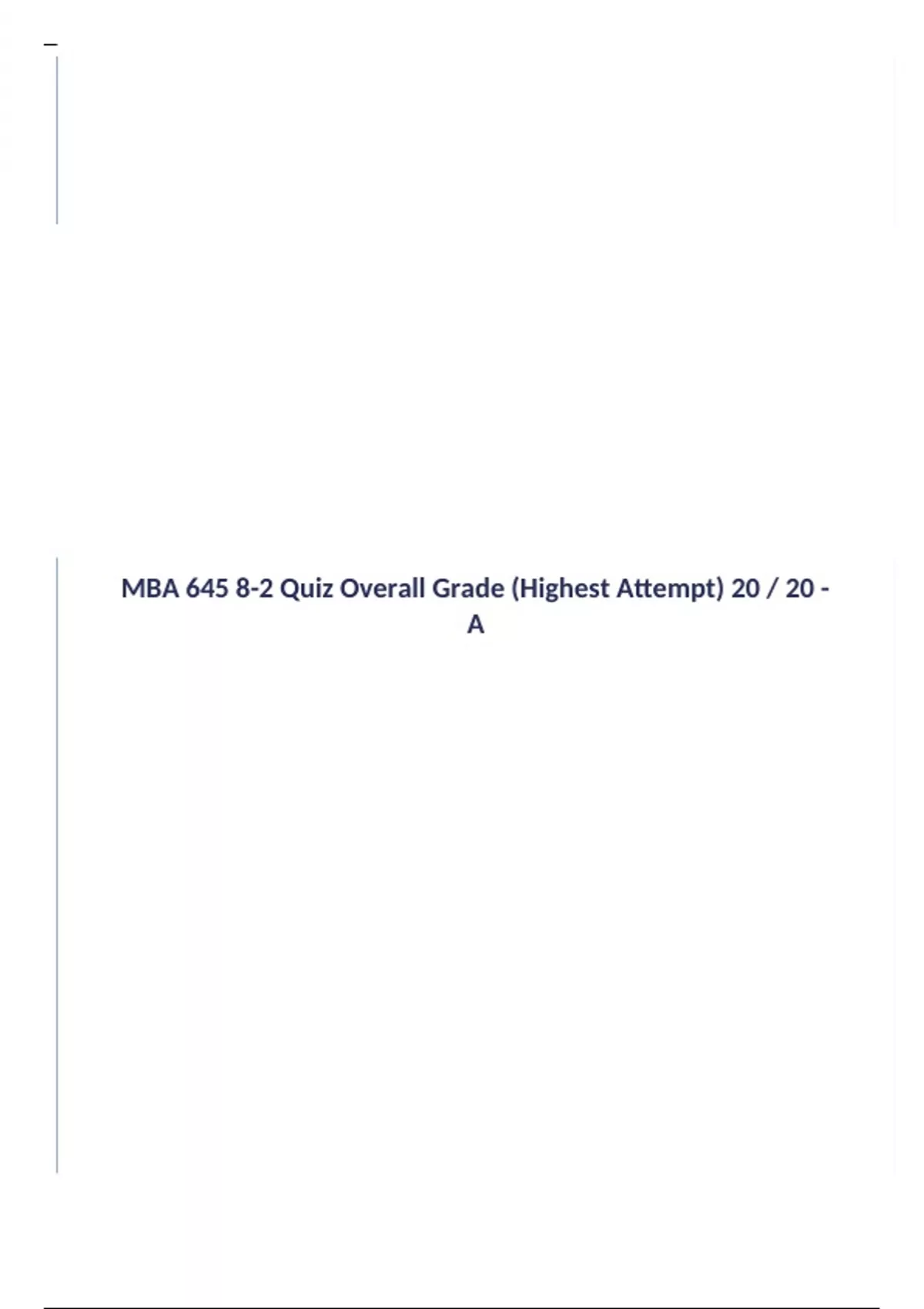 MBA 645 8-2 Quiz Overall Grade (Highest Attempt) 20 / 20 - A