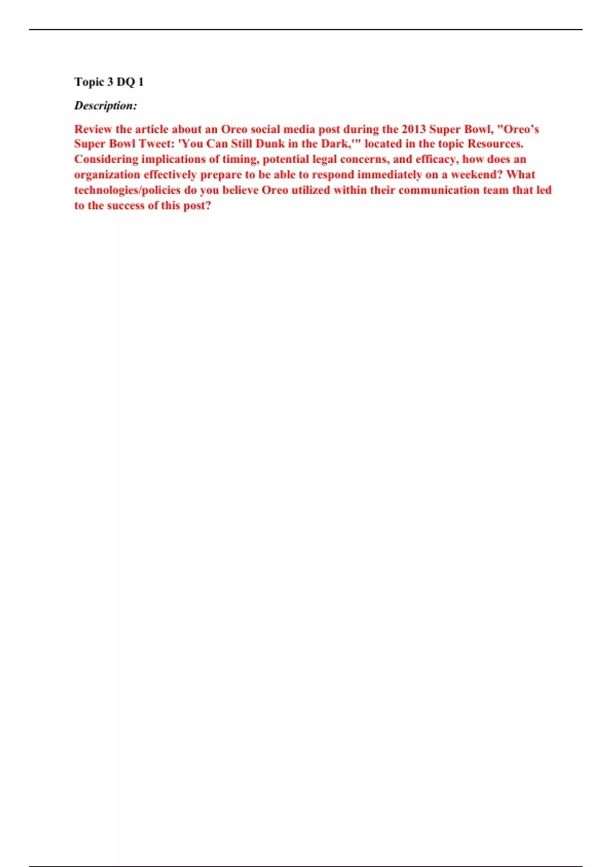 mgt 325 topic 3 dq 1 oreos super bowl tweet sol