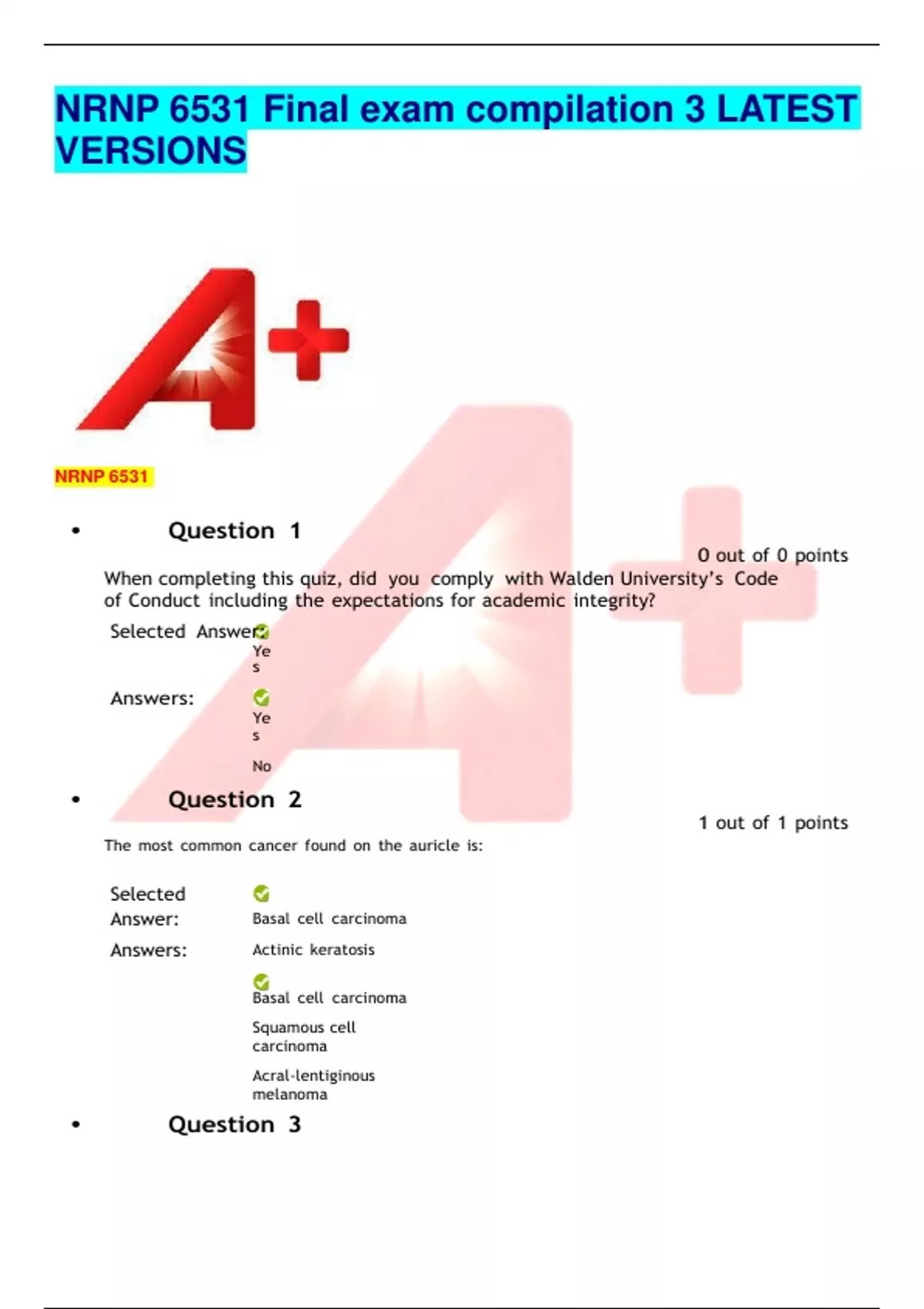 NRNP 6531 Final exam compilation 3 LATEST VERSIONS