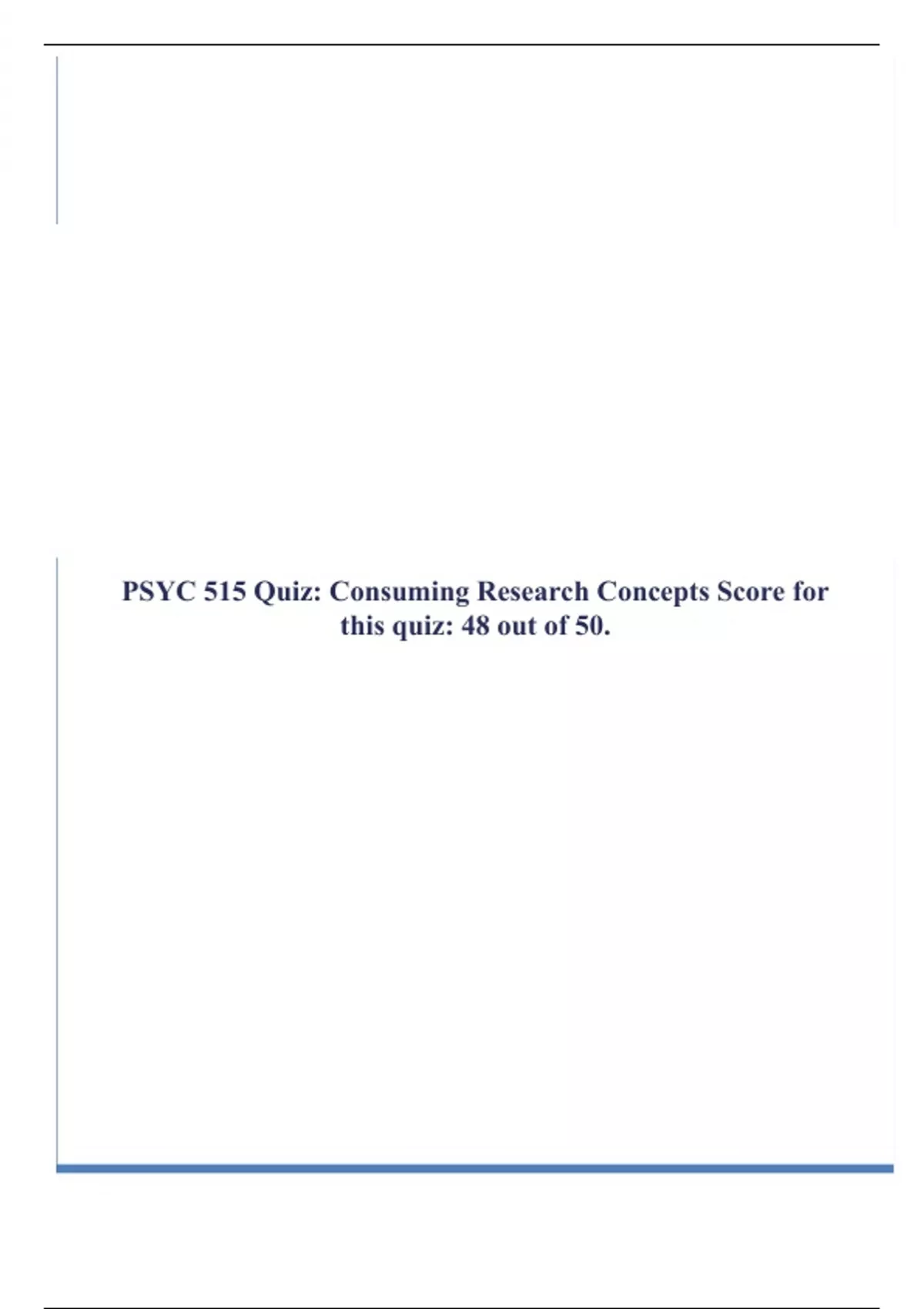 PSYC 515 Quiz: Consuming Research Concepts Score for this quiz: 48 out of 50.