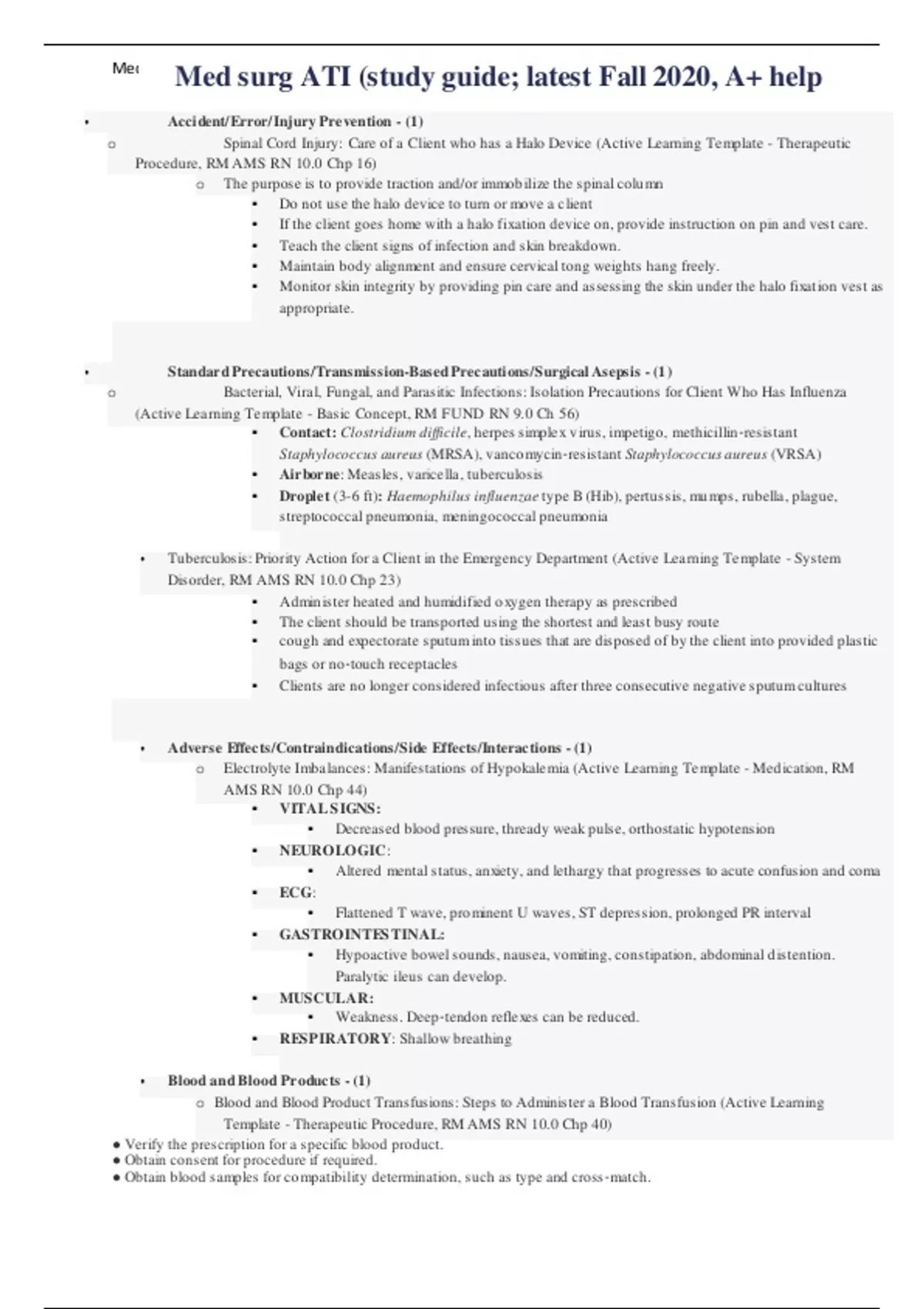 Med surg ATI (study guide; latest Fall 2020, A+ help.