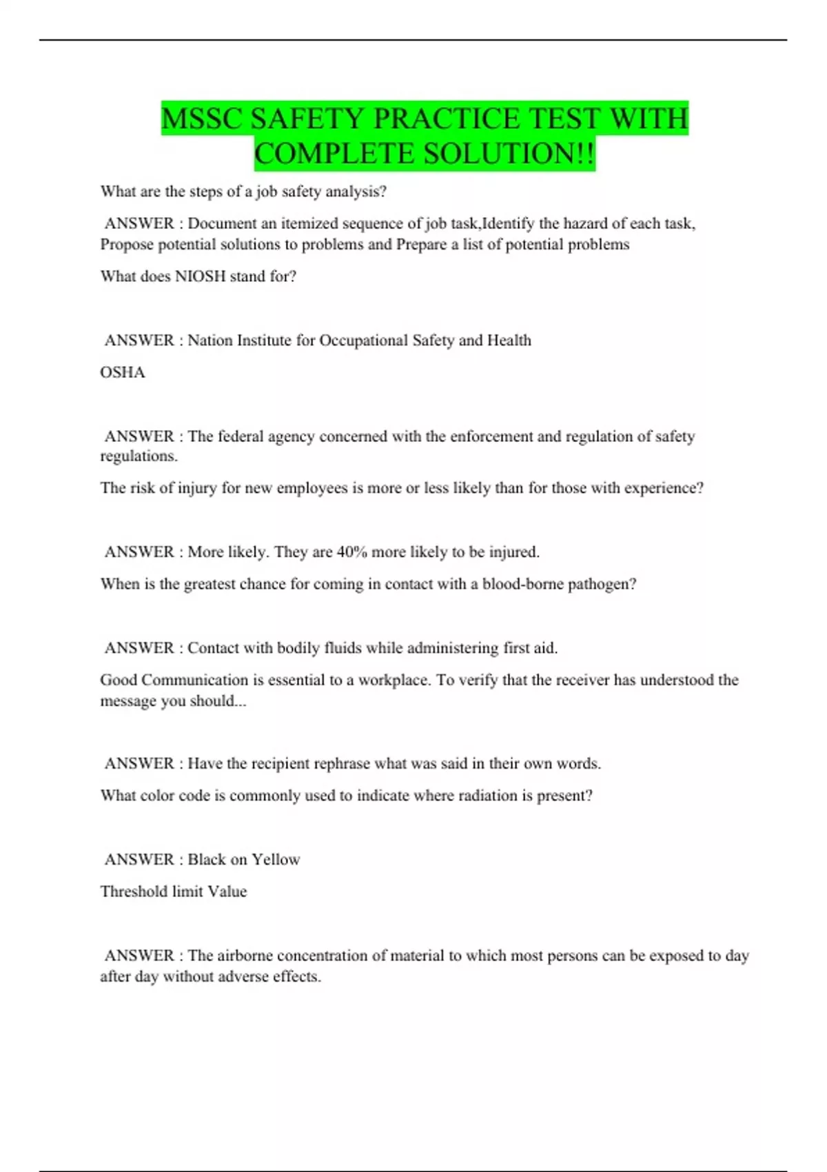 MSSC SAFETY PRACTICE TEST WITH COMPLETE SOLUTION!!