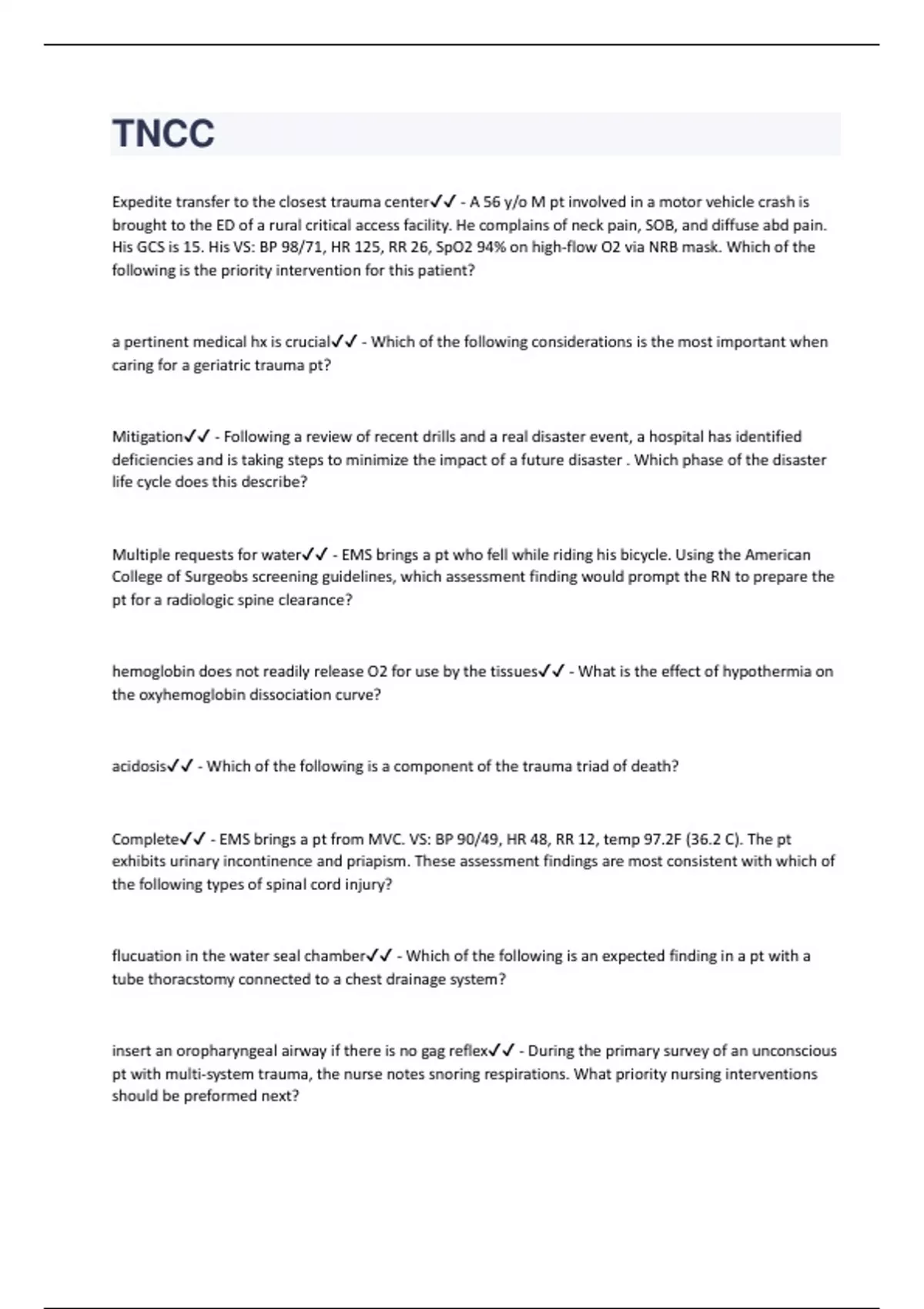 TNCC Questions And Answers