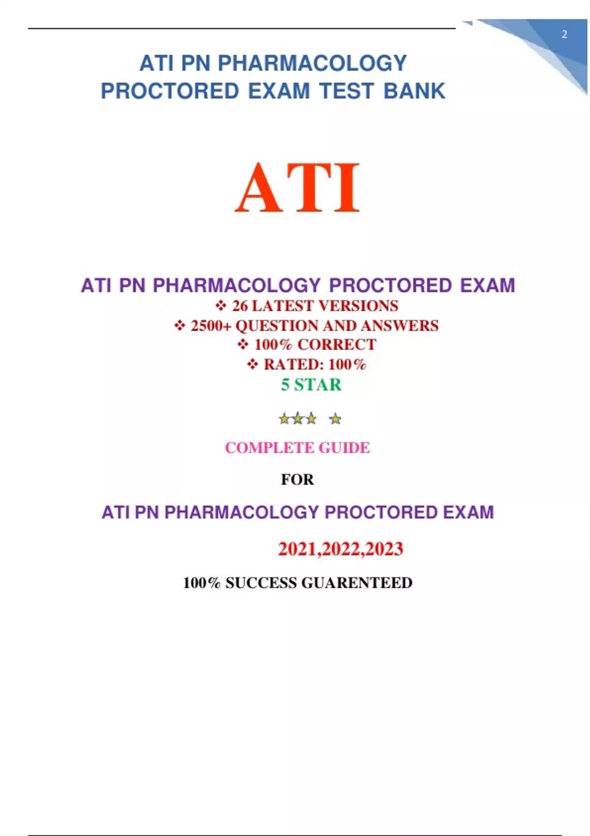 ATI PN PHARMACOLOGY PROCTORED EXAM TEST BANK 26 LATEST VERSIONS 2023/2024. GRADED A