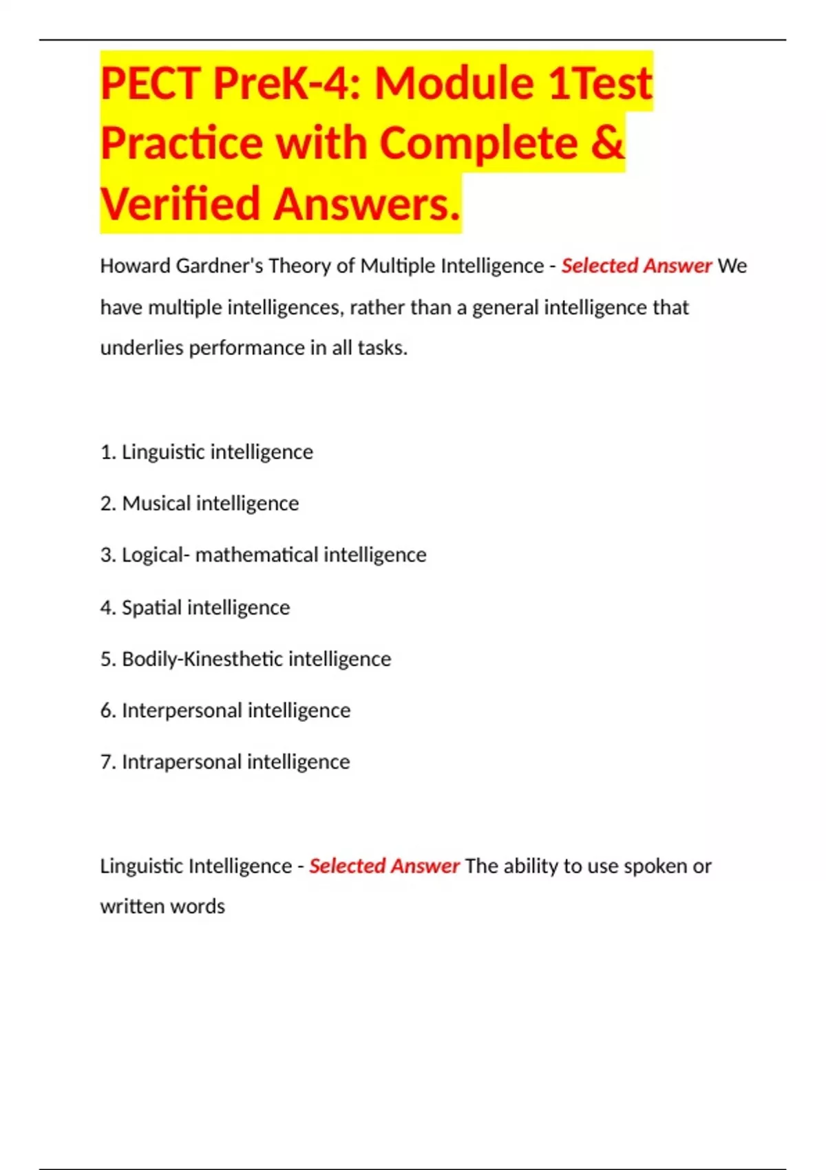PECT PreK-4: Module 1Test Practice with Complete & Verified Answers.