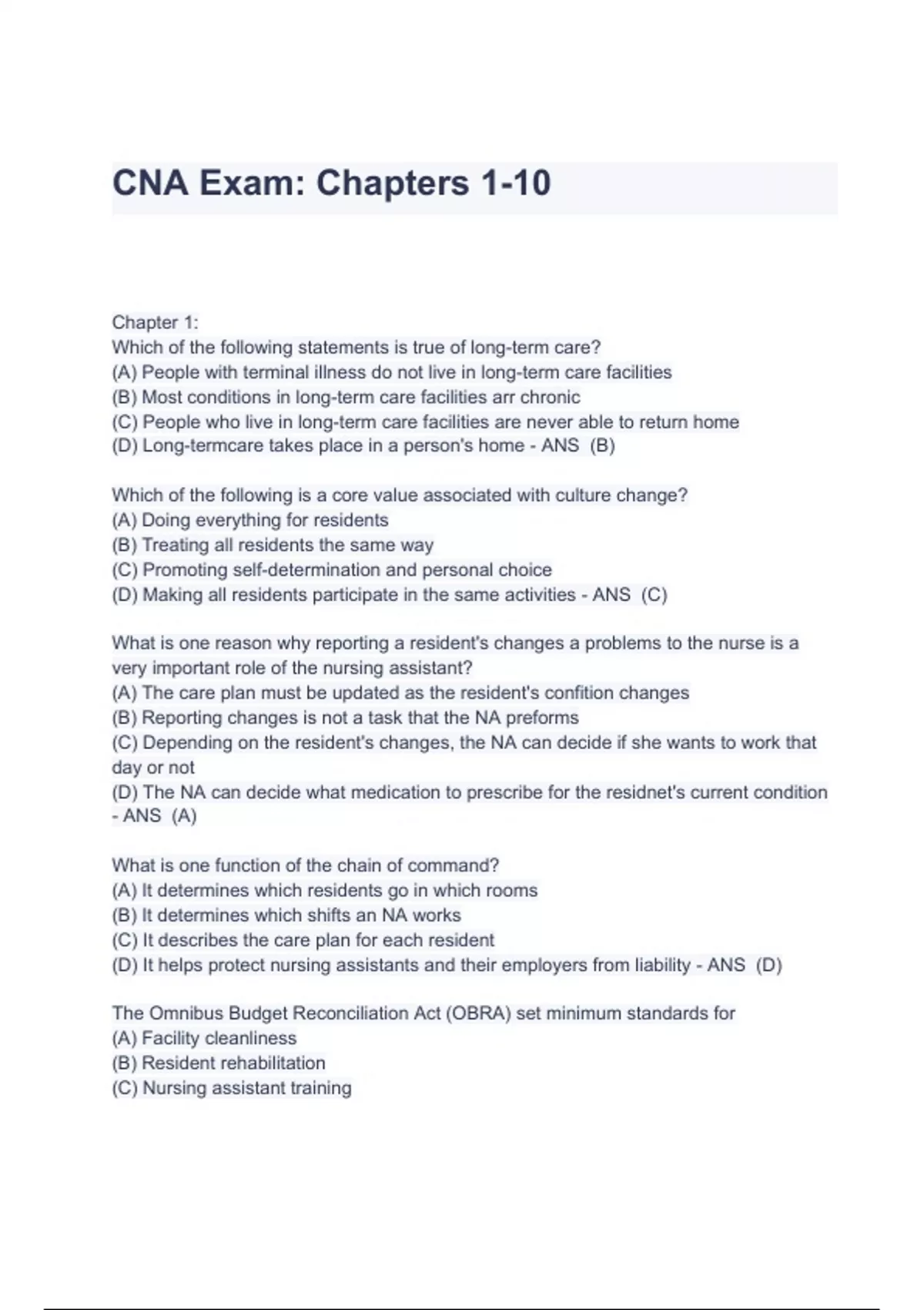 CNA Exam: Chapters 1-10 Questions & Answers 2023 ( A+ GRADED 100% VERIFIED)
