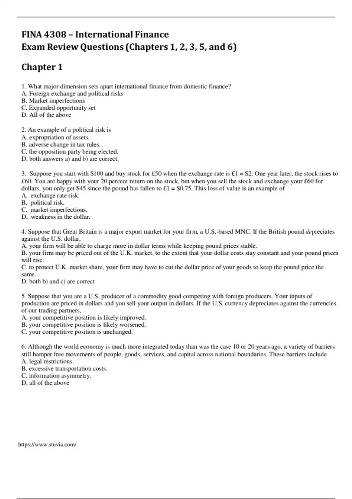 FINA 4308–International Finance Final Exam Review Questions 2023.