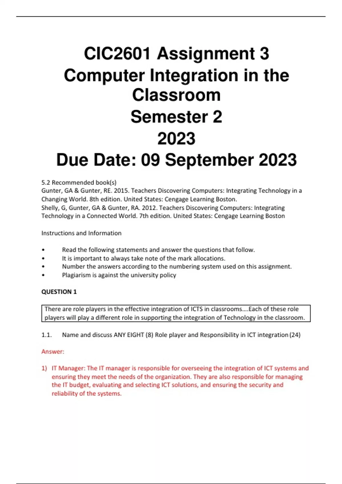 CIC2601 Assignment 3 Semester 2 2023 QUESTIONS AND DETAILED ANSWERS