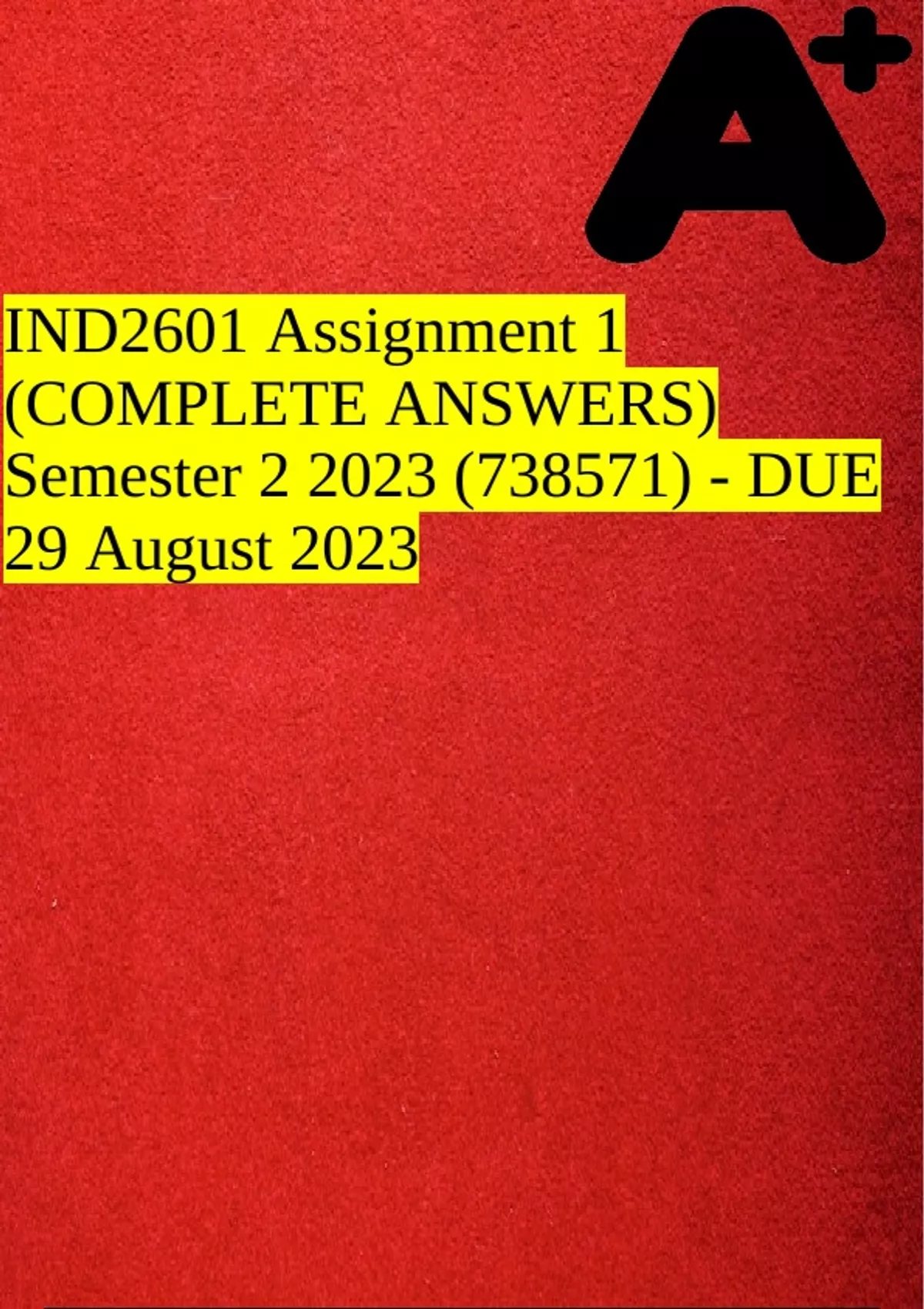 IND2601 Assignment 1 (COMPLETE ANSWERS) Semester 2 2023 () - DUE 29 August 2023 IND2601 Assignment 1 (COMPLETE ANSWERS) Semester 2 2023 () - DUE 29 August 2023 IND2601 Assignment 1 (COMPLETE ANSWERS) Semester 2 2023 () - DUE 29 August 2023
