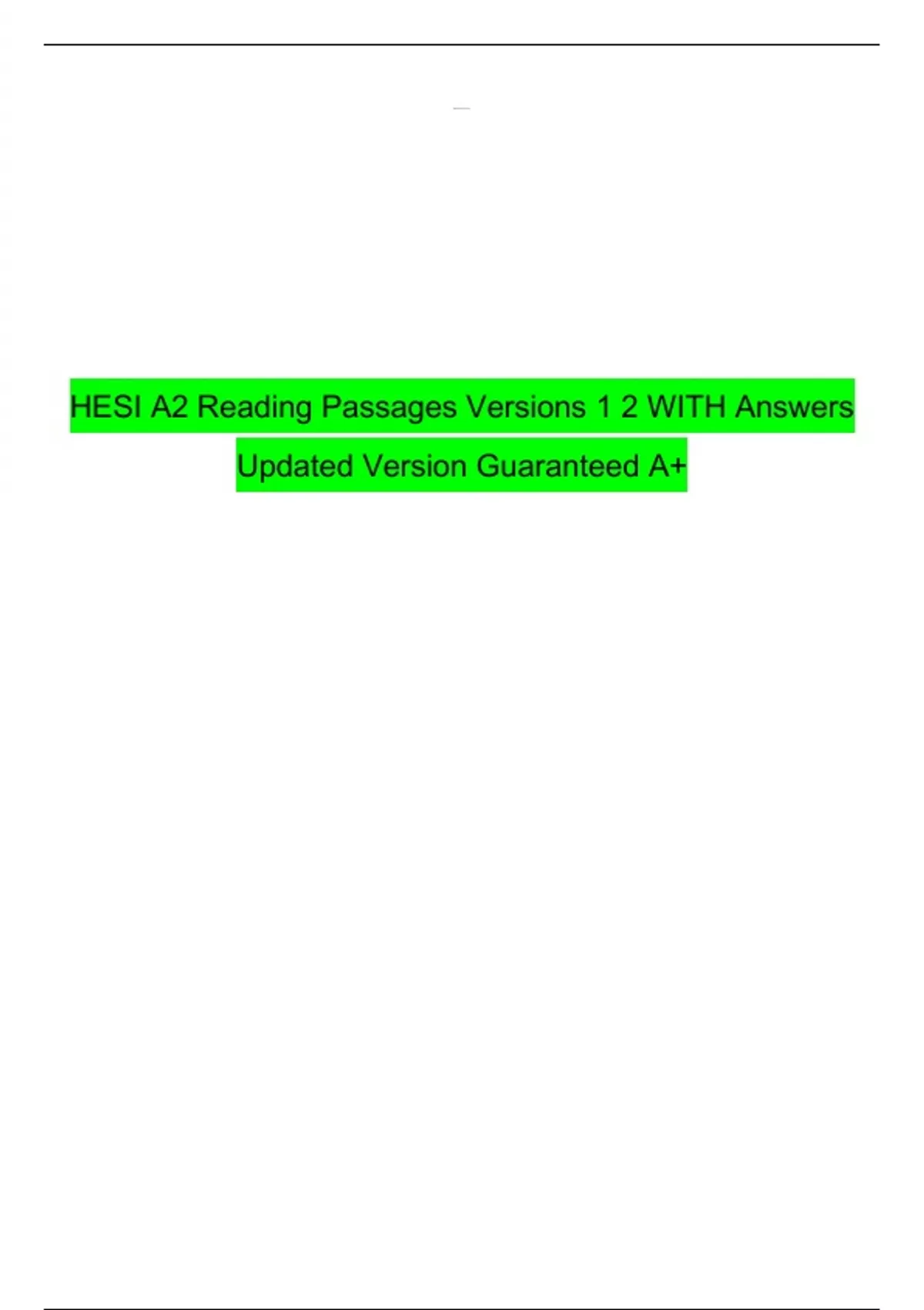 HESI A2 Reading Passages Versions 1 2 WITH Answers Updated Version Guaranteed A+