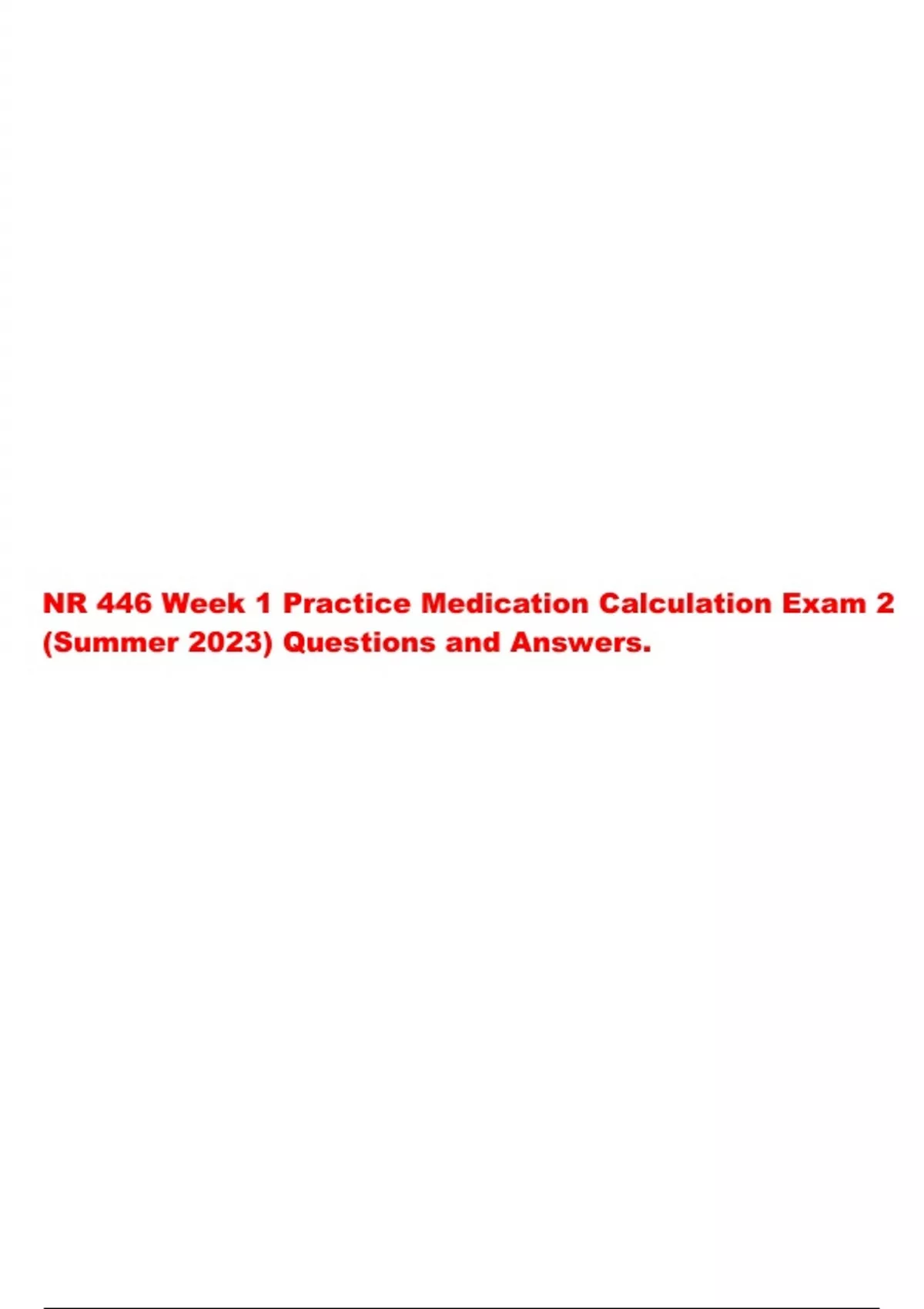 NR 446 Collaborative Healthcare Week 1 Practice Medication Calculation Exam 2 (Summer 2023) Questions and Answers.