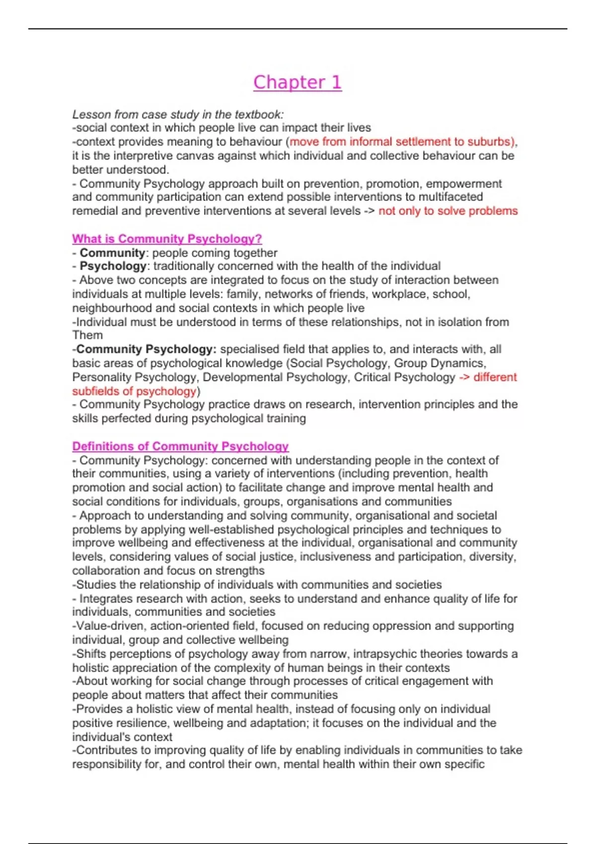 Summary SLK 320 community psychology - semester test and exam notes