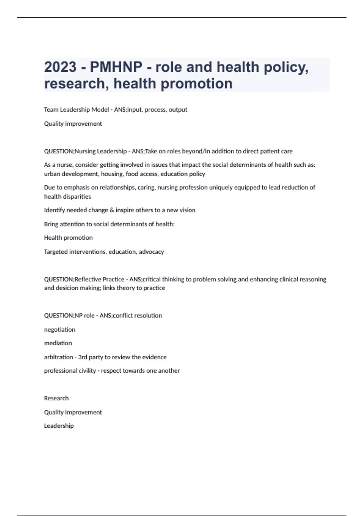 2023 - PMHNP - role and health policy, research, health promotion.docx