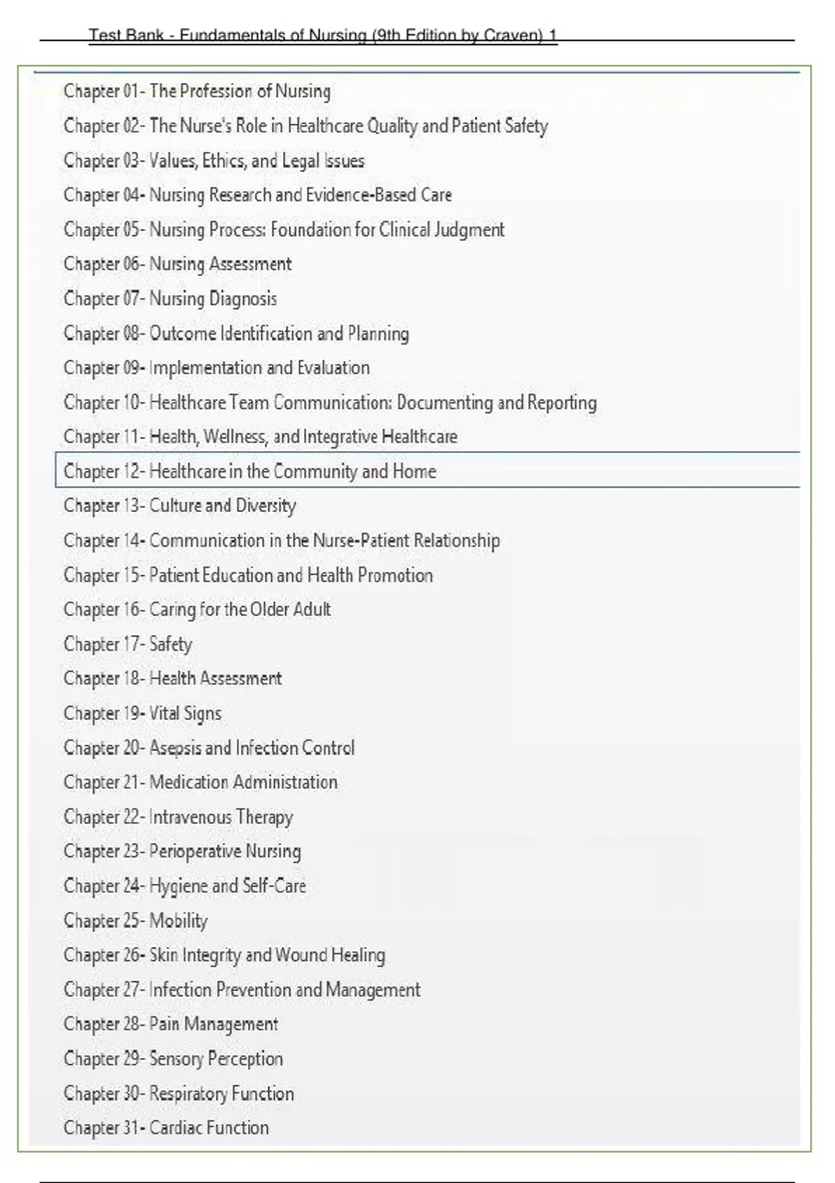 Test Bank - Fundamentals of Nursing (9th Edition by Craven) WITH rationale