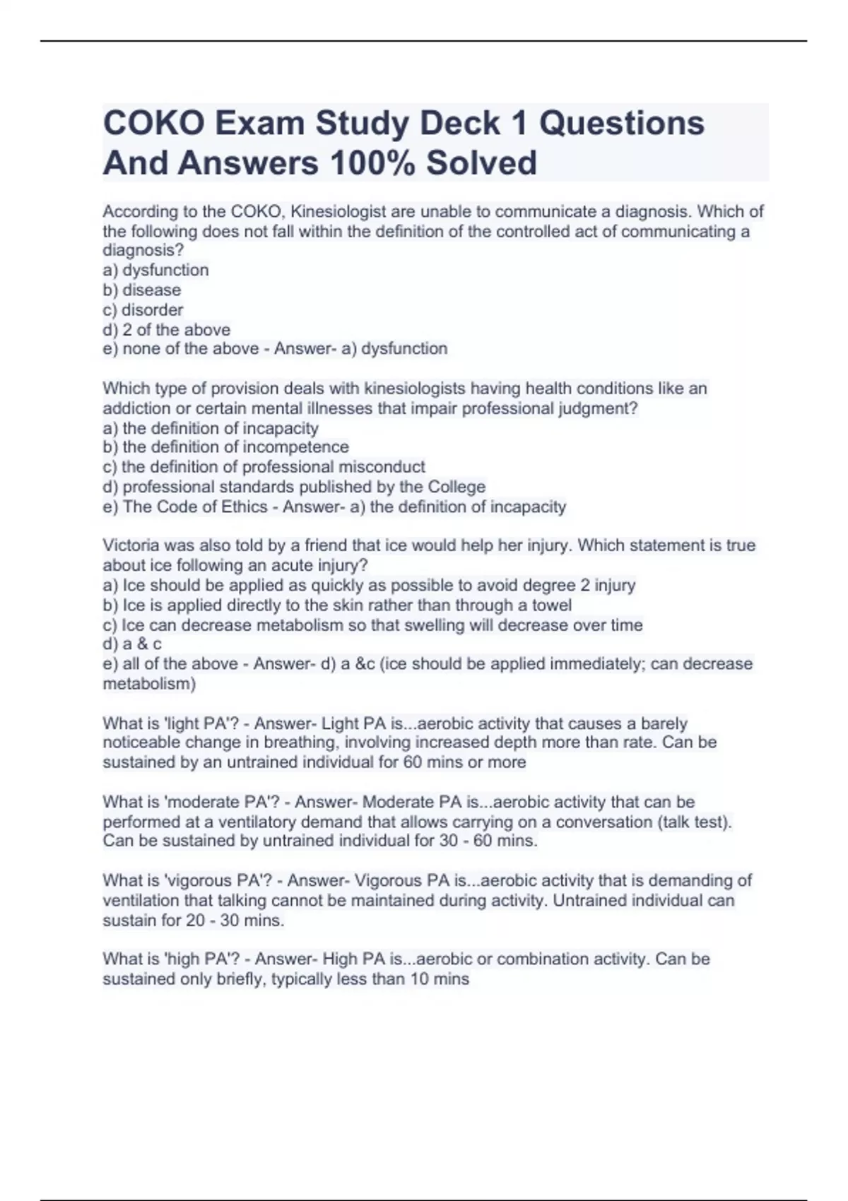 COKO Exam Study Deck 1 Questions And Answers 100% Solved