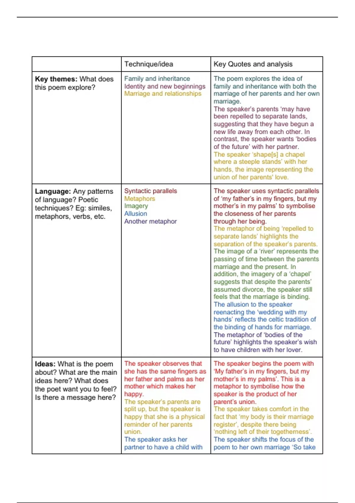 techniques? Eg: similes, Imagery mother’s in my palms’ to symbolise