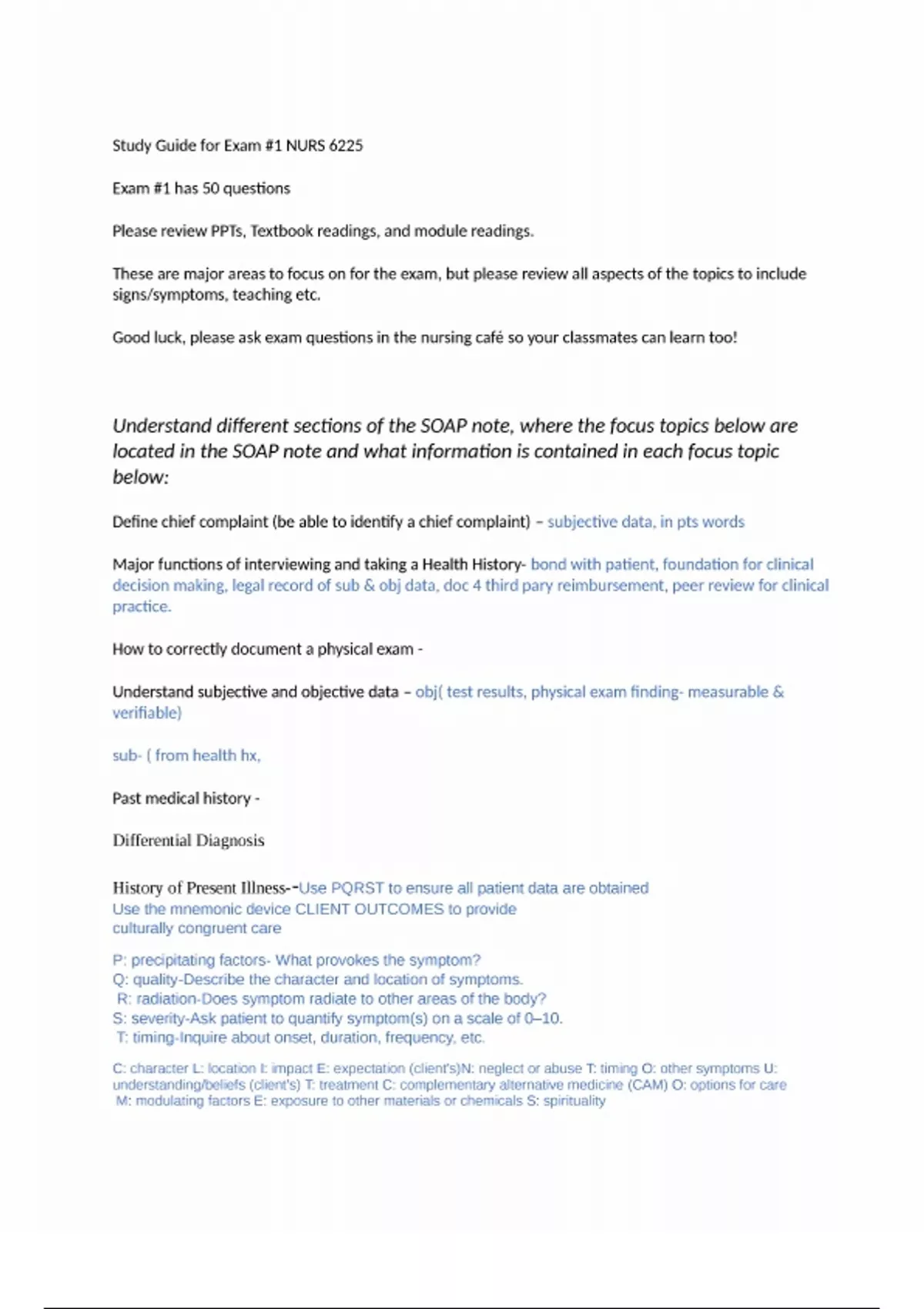 study guide for exam 1 nurs 6225 fall 2023 with co