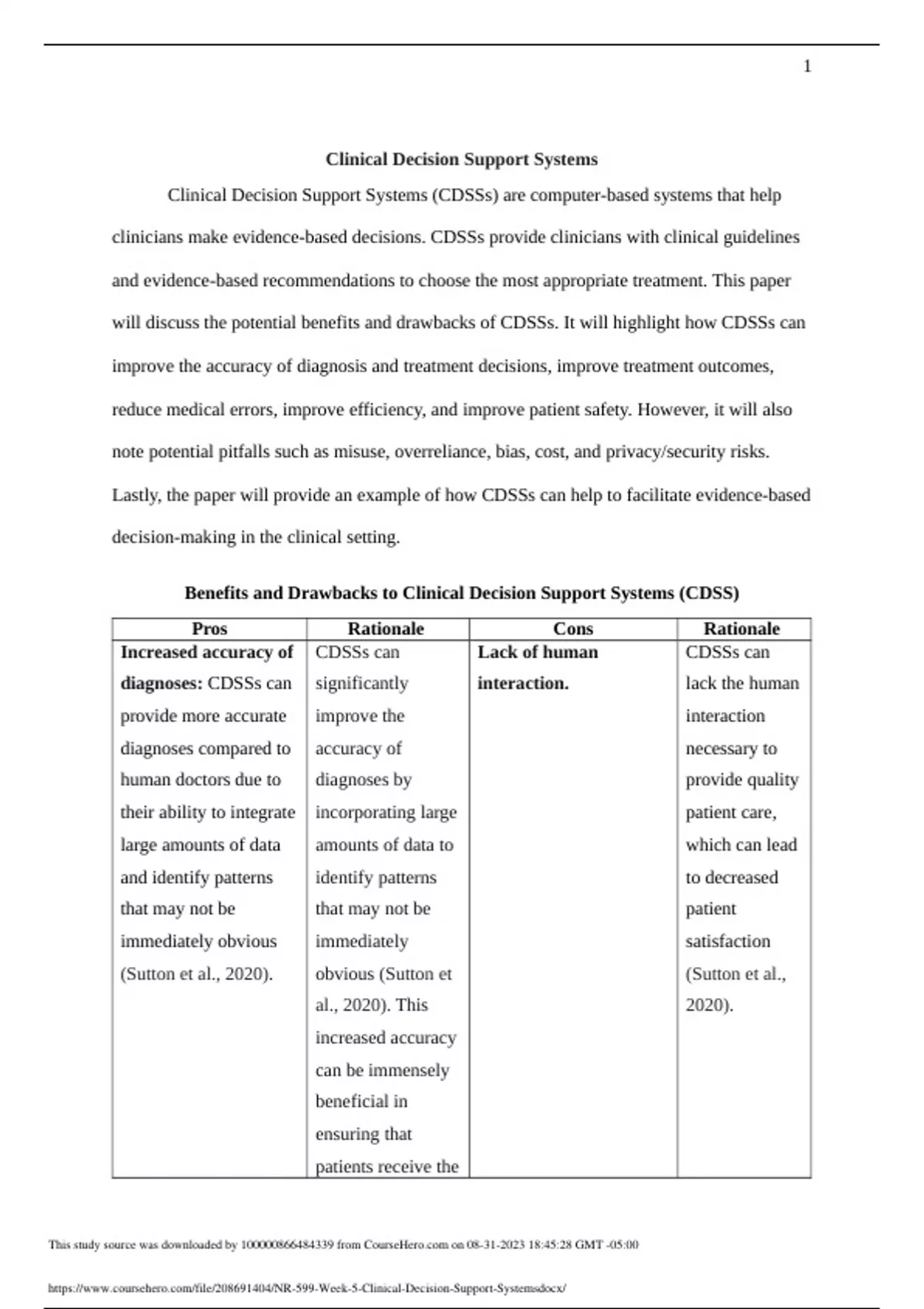 NR 599 Week 5- Clinical Decision Support Systems Fall 2023
