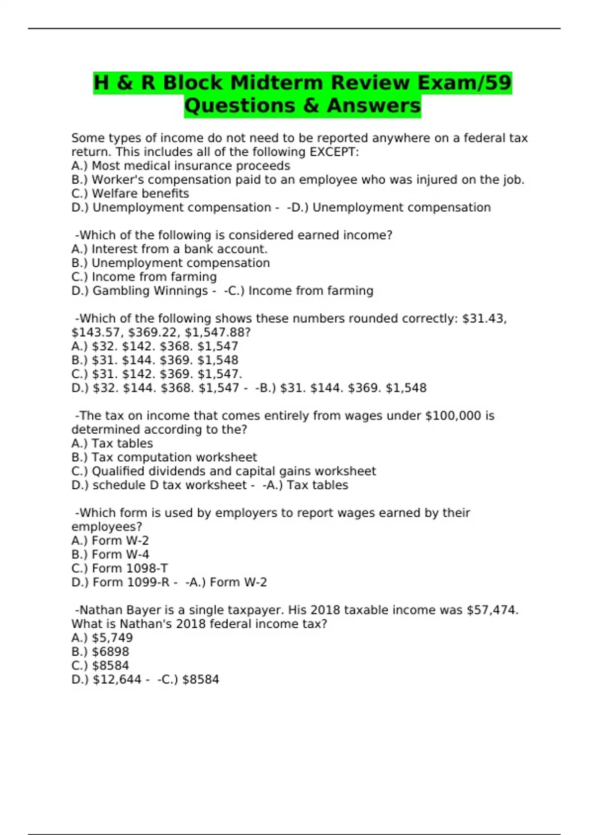 H & R Block Midterm Review Exam/59 Questions & Answers