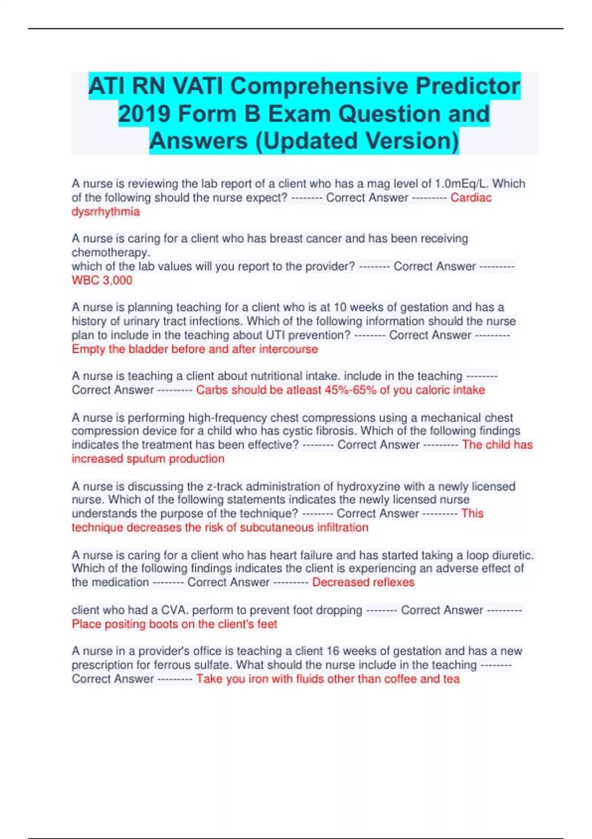 ATI RN VATI Comprehensive Predictor 2019 Form B Exam Question and Answers (Updated Version)