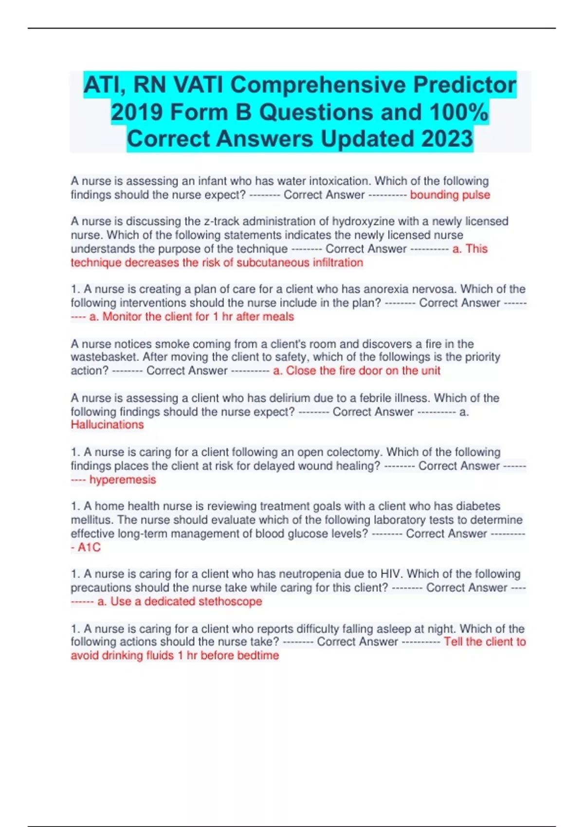 - ATI, RN VATI Comprehensive Predictor 2019 Form B
