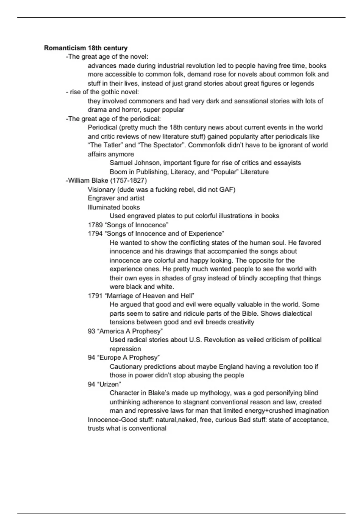 These notes cover the entire English Literature Romanticism course. There's a little bit of cursing at the end, I spent 8 hours compiling this and transcribing it onto 2 notecards so I was grumpy. These notes are comprehensive and in simple language.