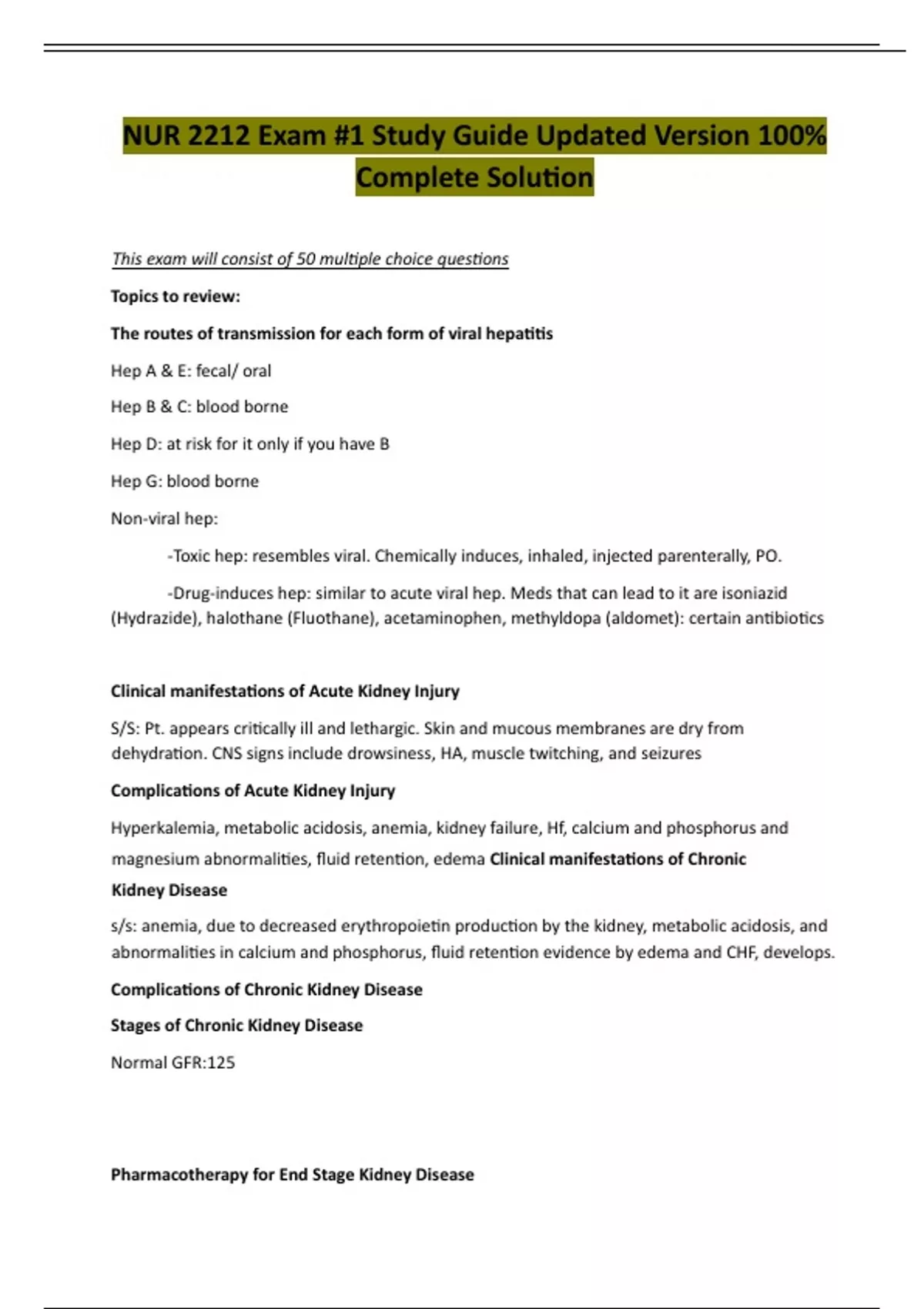 NUR 2212 Exam #1 Study Guide Updated Version 100% Complete Solution
