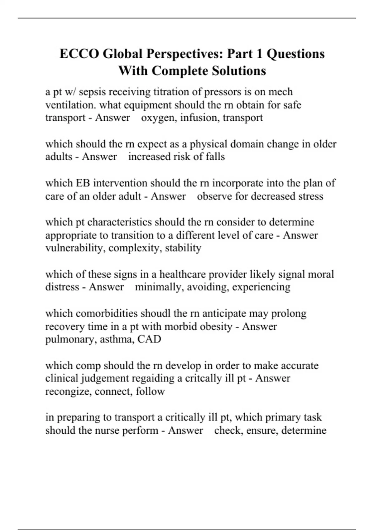 ECCO Global Perspectives: Part 1 Questions With Complete Solutions