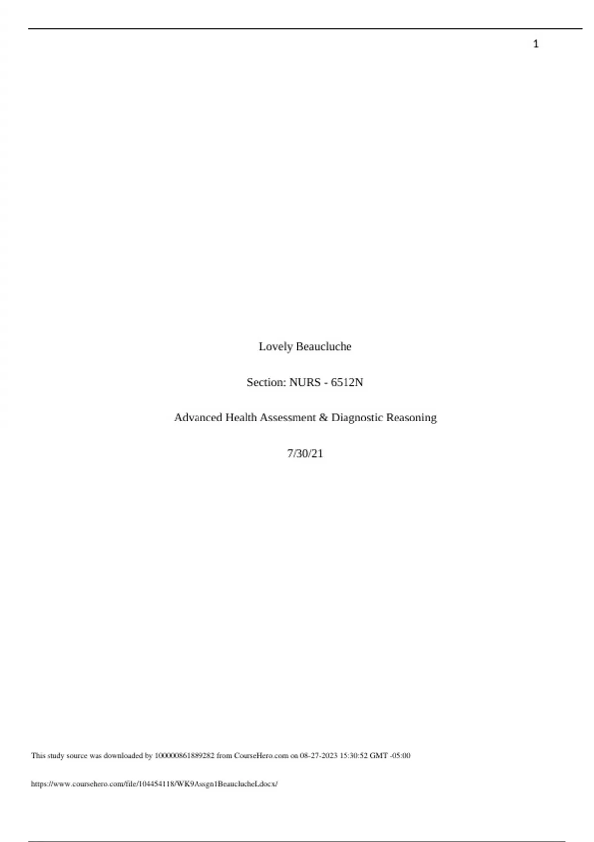 NURS - 6512N Advanced Health Assessment & Diagnostic Reasoning cc: Case Study 2023