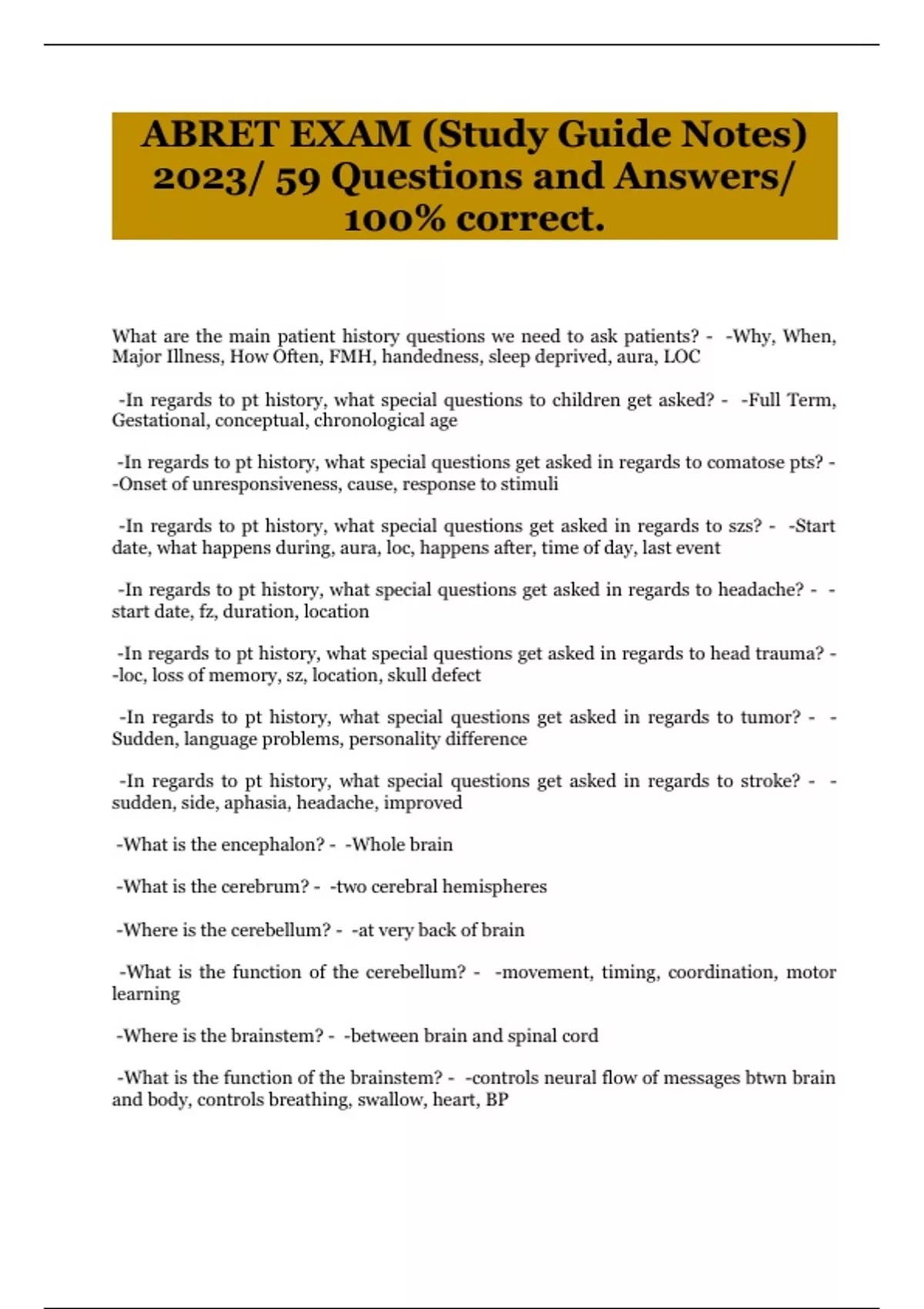 ABRET EXAM (Study Guide Notes) 2023/ 59 Questions and Answers/ 100% correct