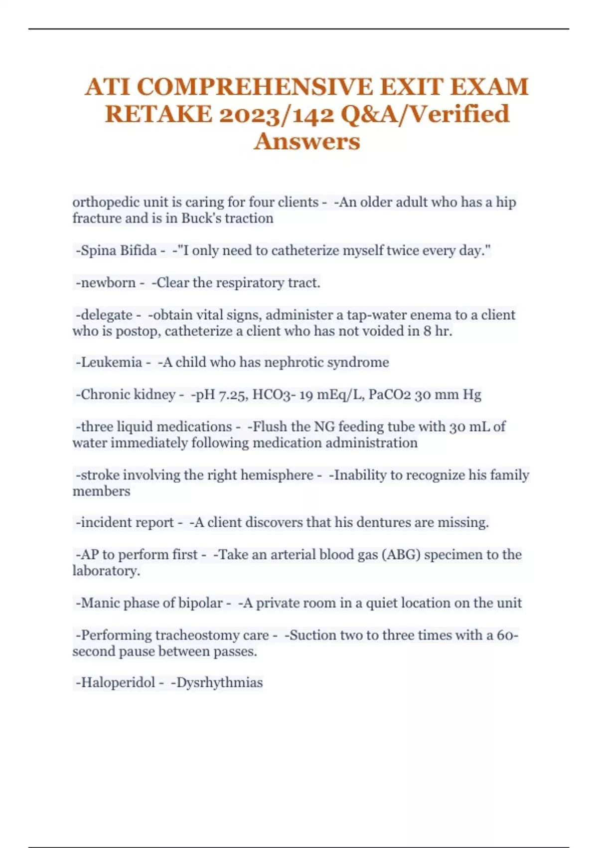 ATI COMPREHENSIVE EXIT EXAM RETAKE 2023/142 Q&A/Verified Answers