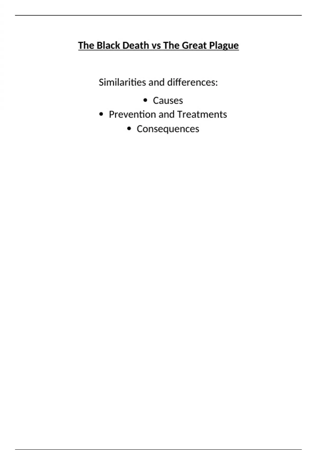 An in-depth comparison of the Black Death vs the Great Plague outlining both the similarities and differences as well as causes and consequences. Providing you with all the information you need to analyse how medical knowledge has changed over time so you can score full marks on any question, achieving that grade 9.