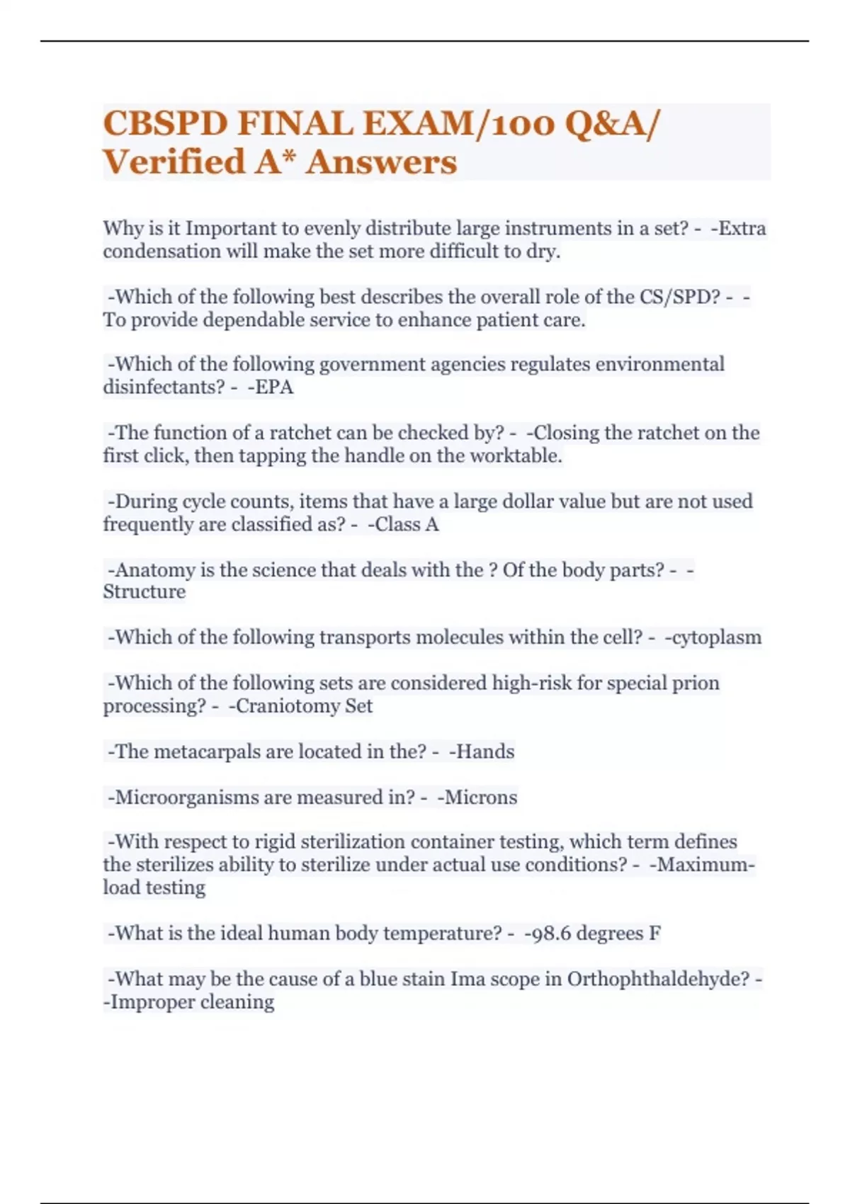 CBSPD FINAL EXAM/100 Q&A/ Verified A* Answers