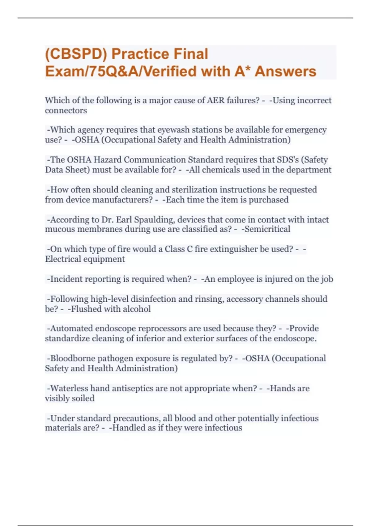 (CBSPD) Practice Final Exam/75Q&A/Verified with A* Answers