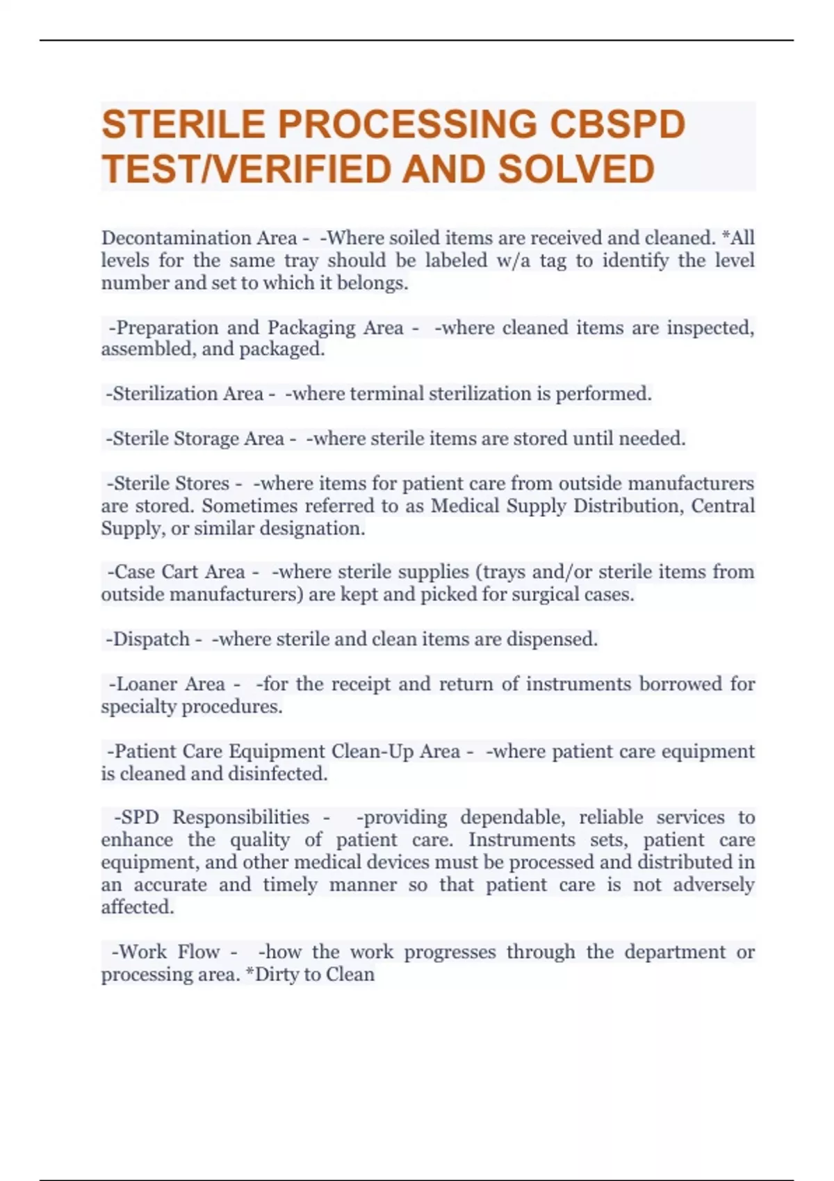 STERILE PROCESSING CBSPD TEST/VERIFIED AND SOLVED