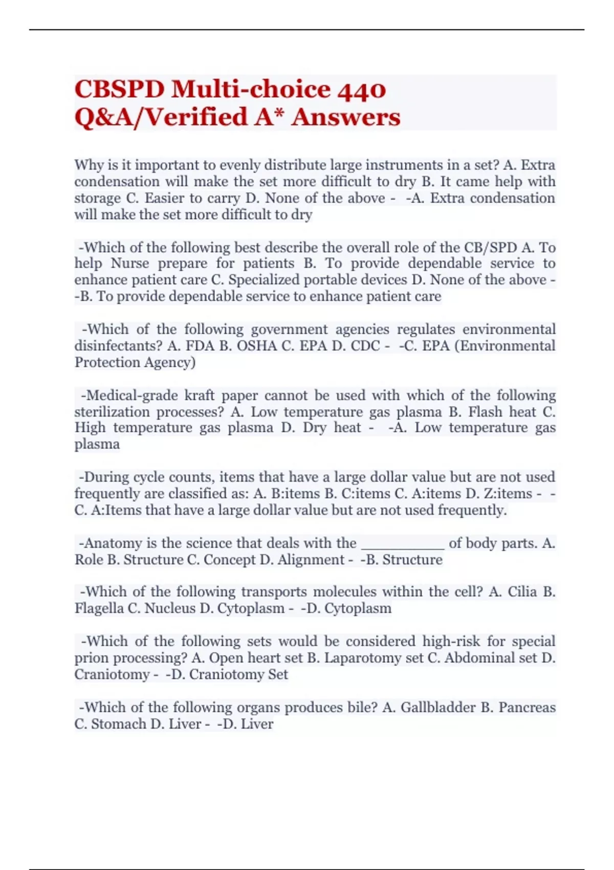 CBSPD Multi-choice 440 Q&A/Verified A* Answers