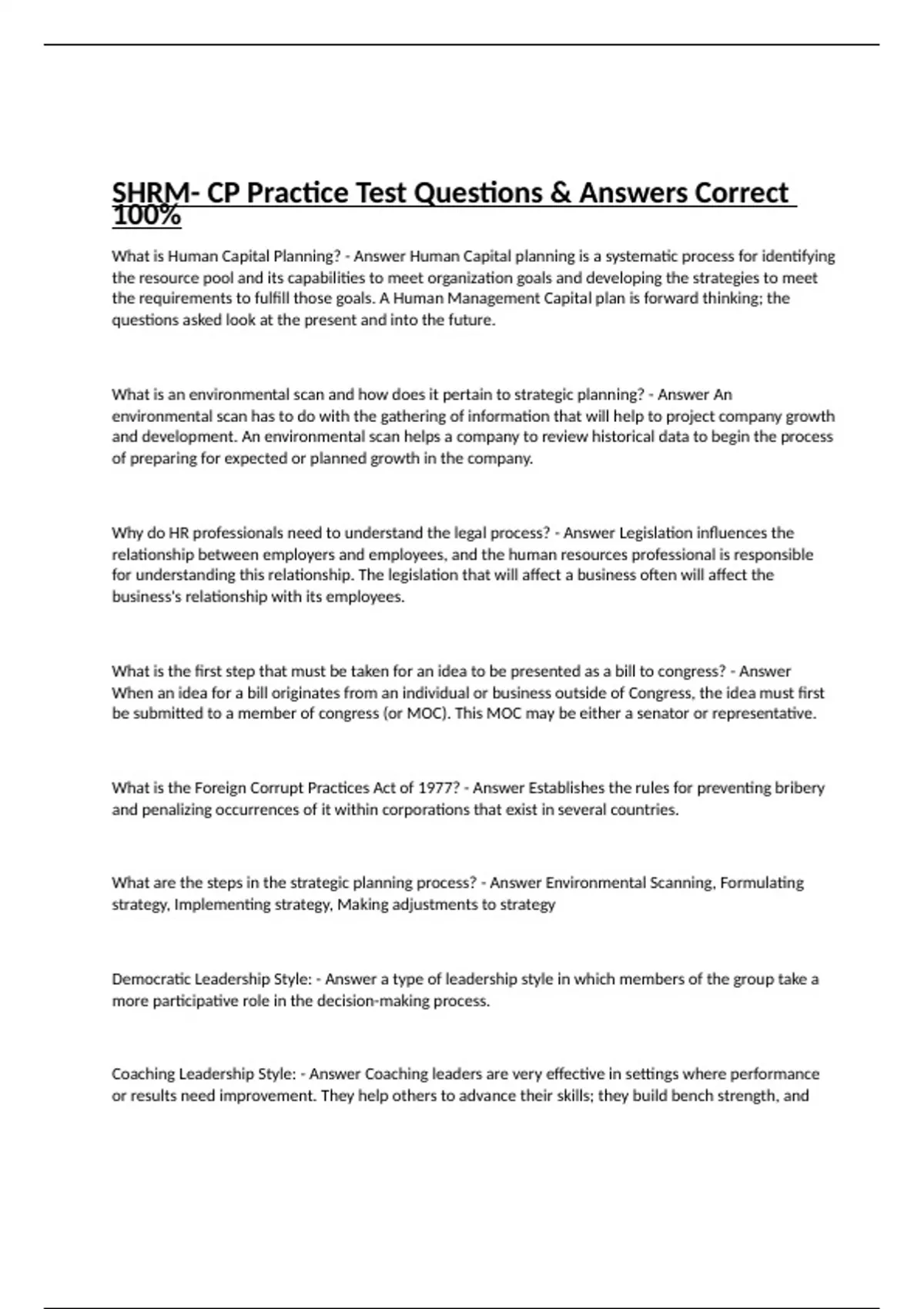 SHRM- CP Practice Test Questions & Answers Correct 100%