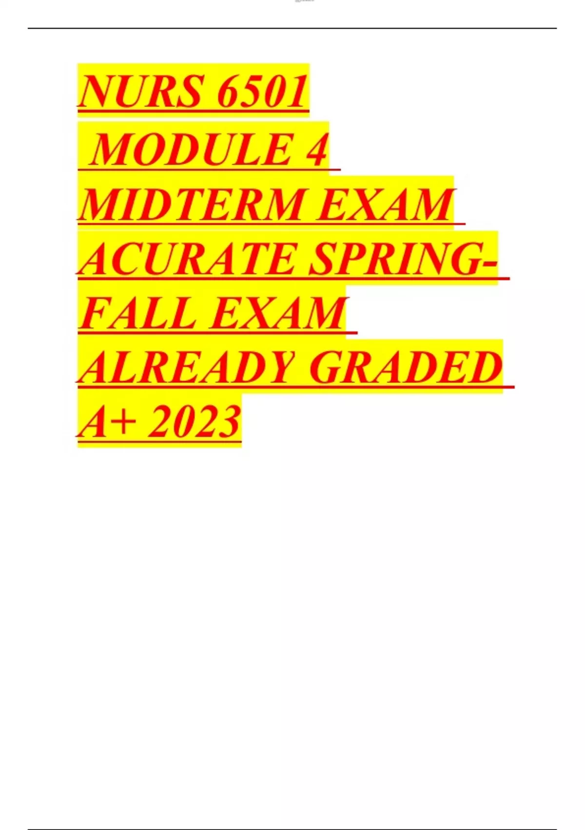 NURS 6501 MODULE 4 MIDTERM EXAM ACURATE SPRING- FALL EXAM ALREADY GRADED A+ 2023