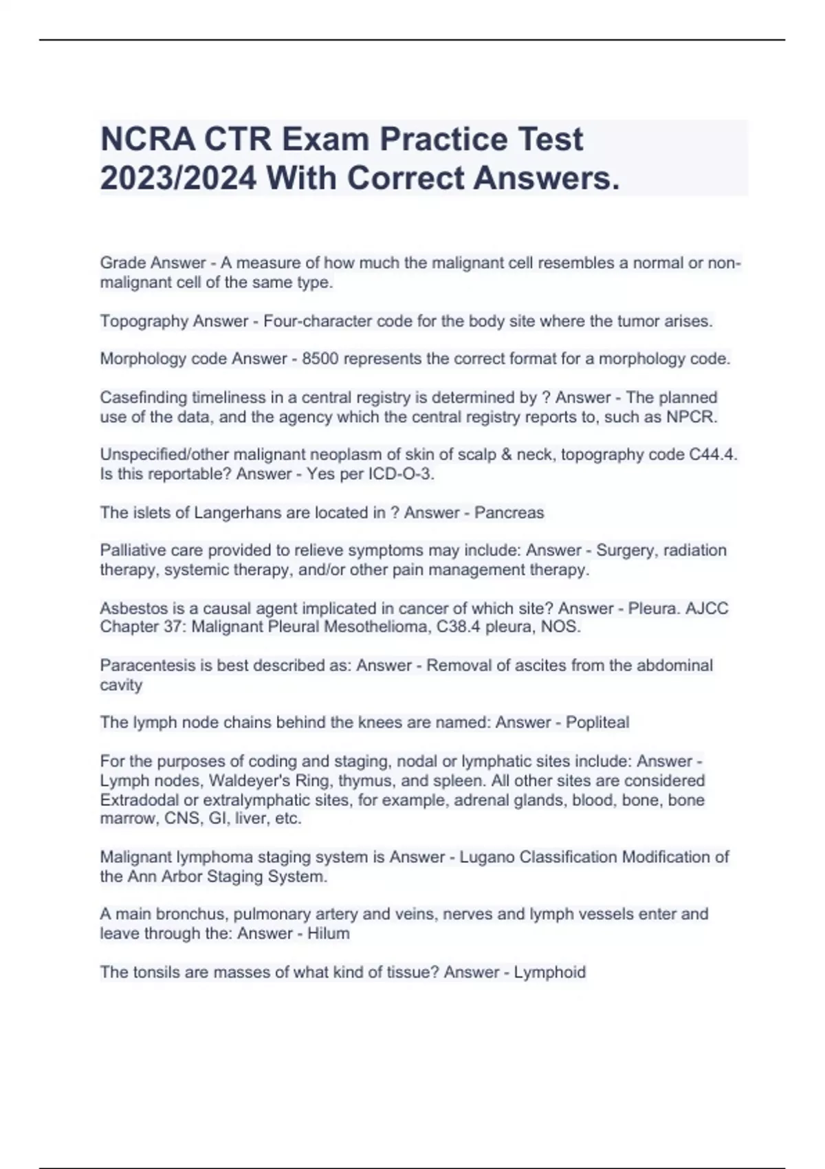NCRA CTR Exam Practice Test 2023/2024 With Correct Answers.